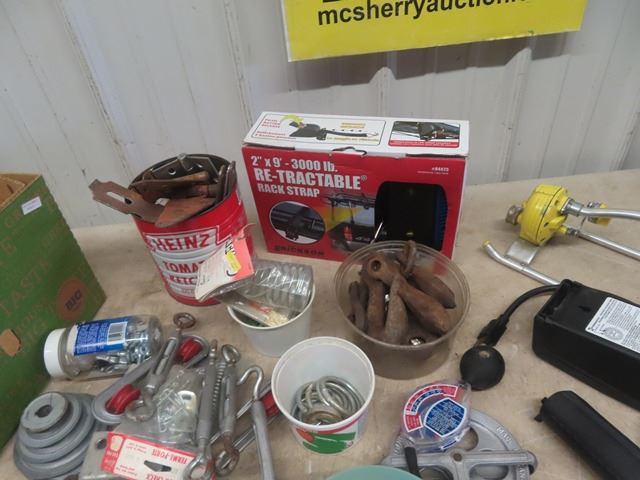 Retractable Rack Straps, Sprinkler, Anti Freeze Tester, Timer, Chain Hooks, Grease Gun with Needle Nozzle, Assorted Pulleys plus more