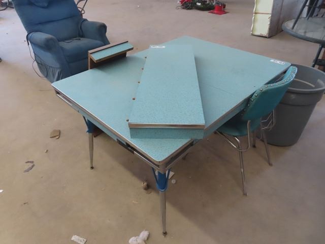 Retro Chrome Leg Table with 2 Leaves & 1 Chair