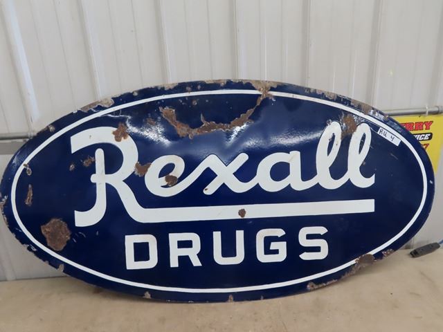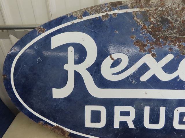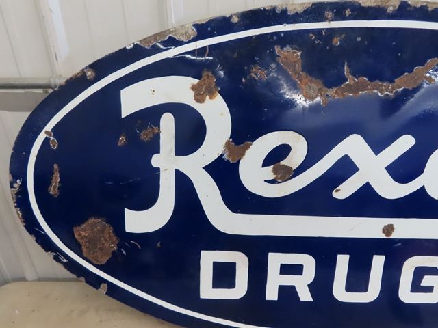 Rexall Drugs Porc Oval - 2 Sided Sign 29" x 57"