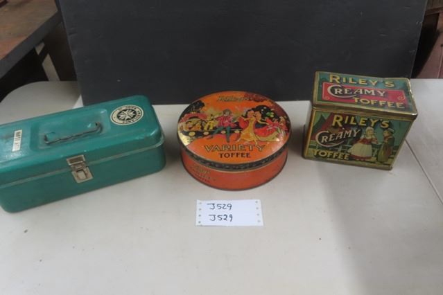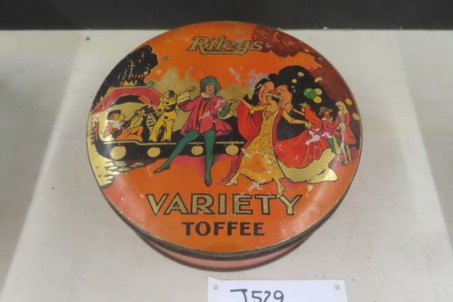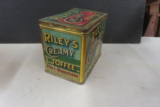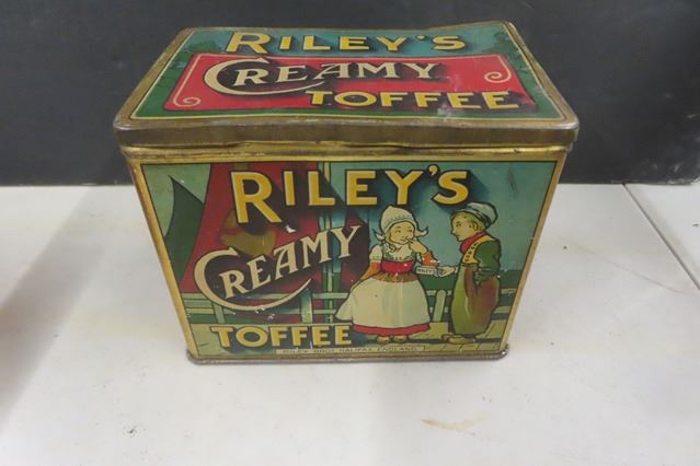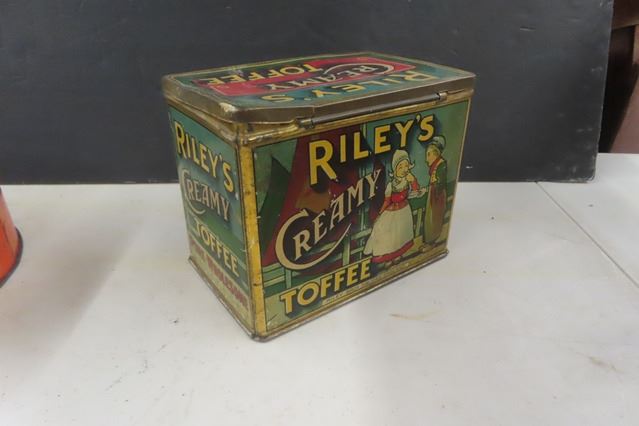 Riley's Creamy Toffee Tin with Hinged Lid, Riley's Variety Toffee Round Tin, First Aid Kit