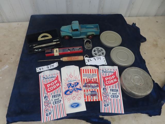 Ringling Circus Popcorn Bags, Coke Ice Pick, Blue Ribbon Ruler, Film Reel + Case plus more