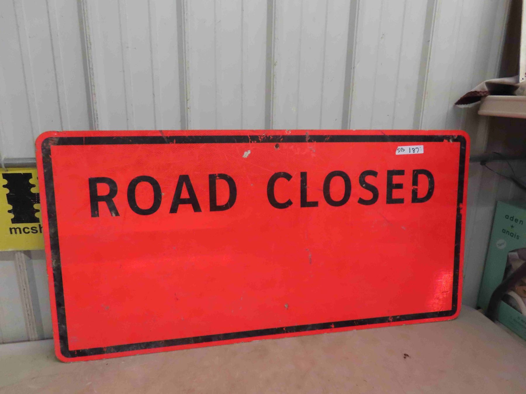 Road Closed Sign 24'' x 47'' , No Parking Sign on Post