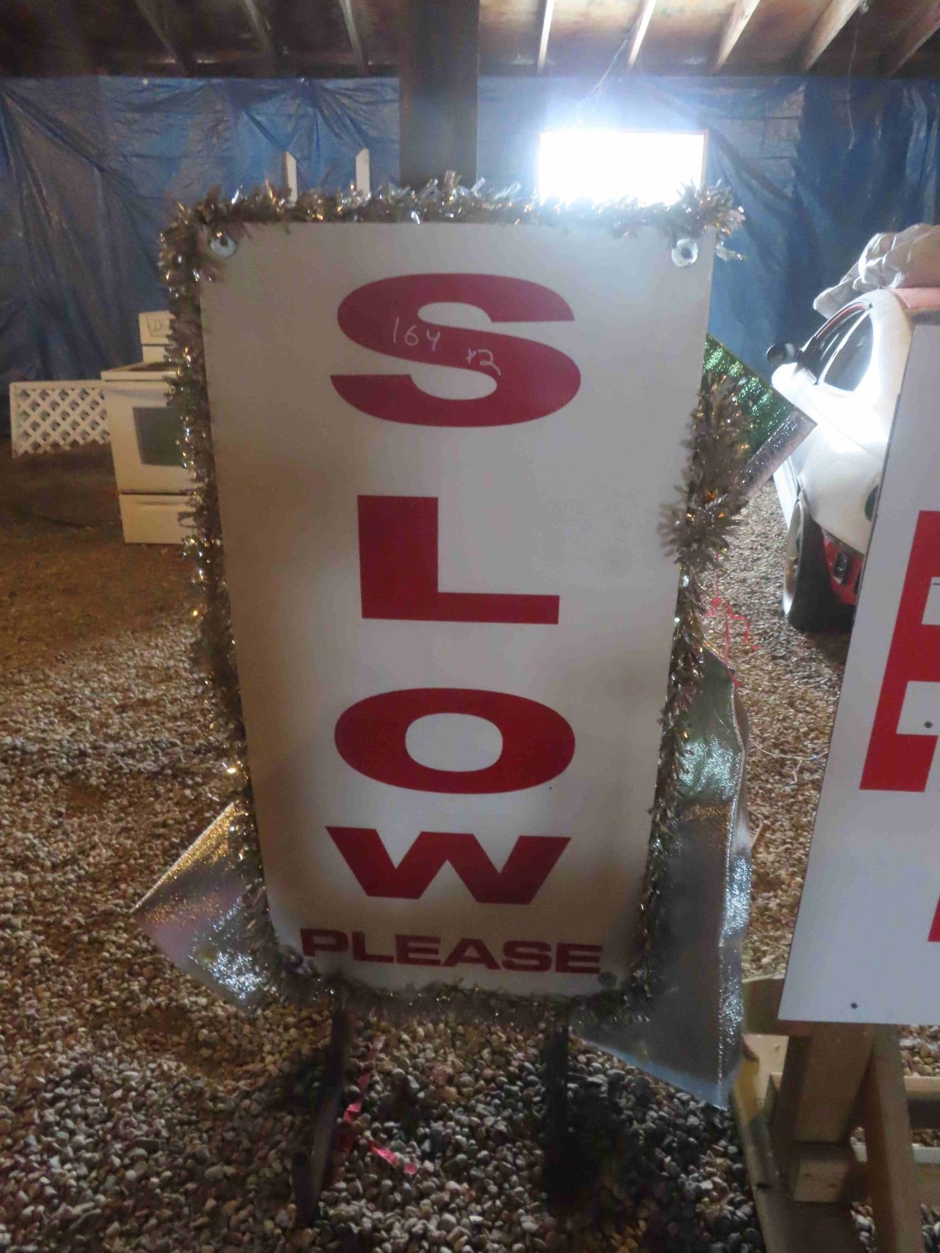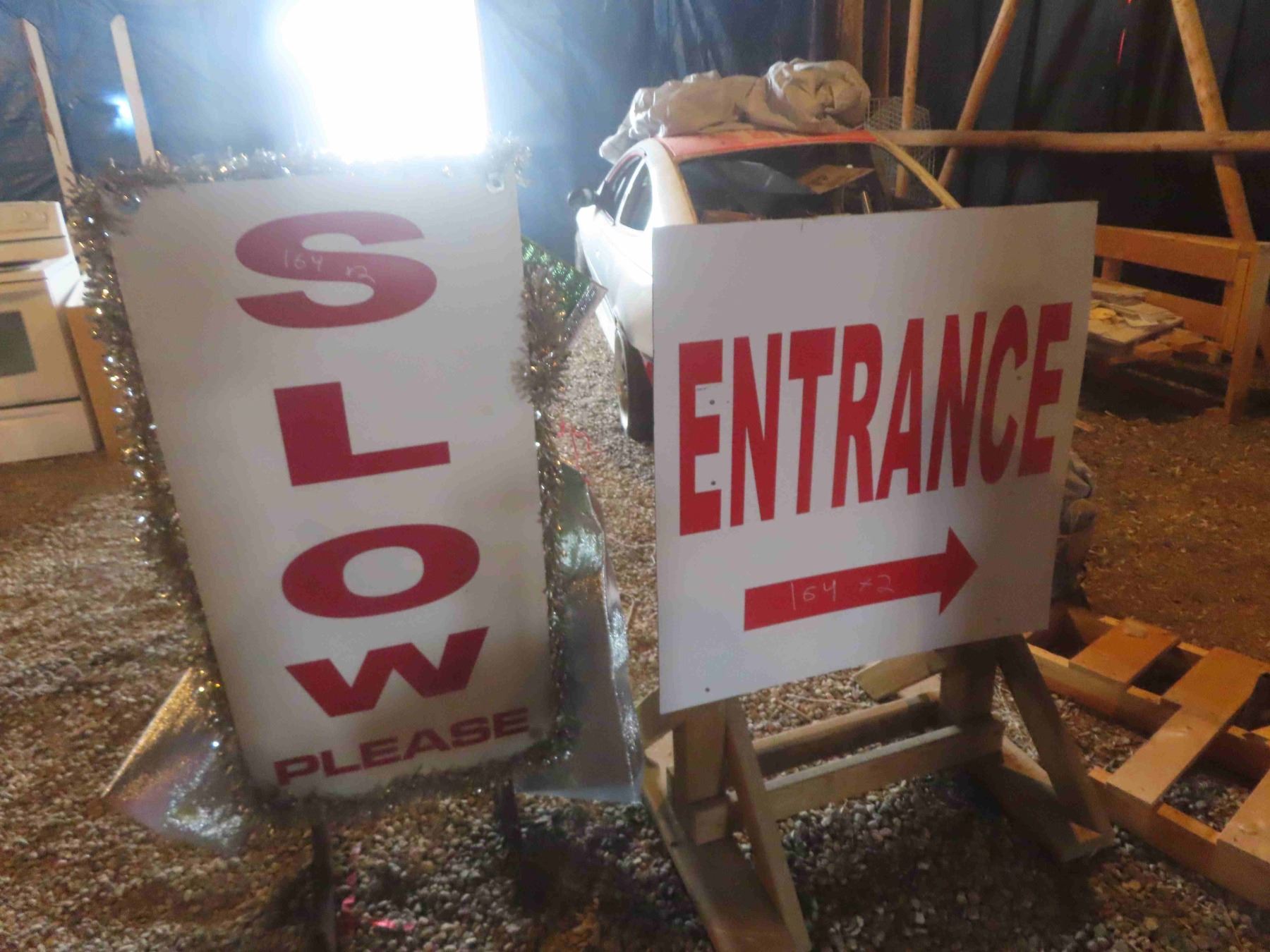 Road Side Signs : Metal Framed Slow 56'' x 24'' , Wood Framed Entrance 36'' x 50'' W