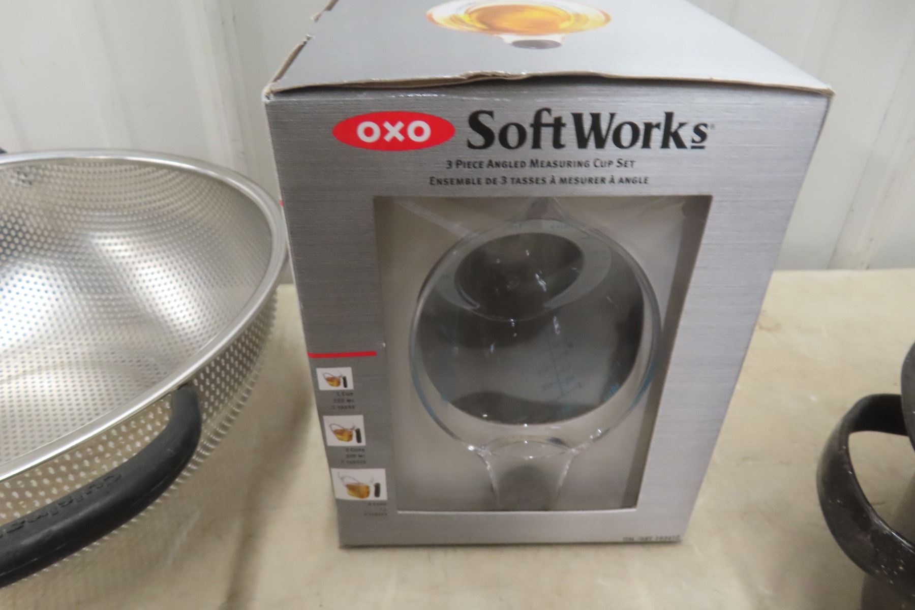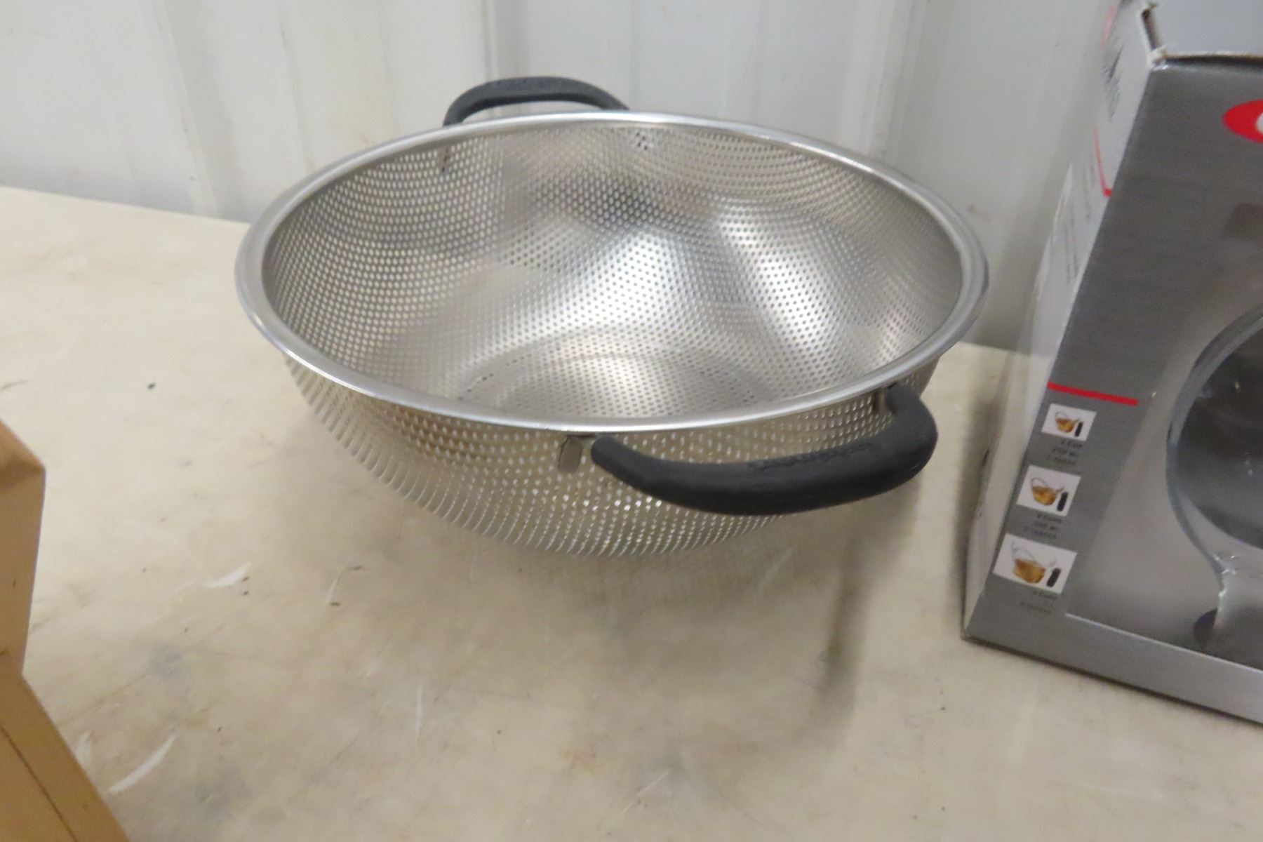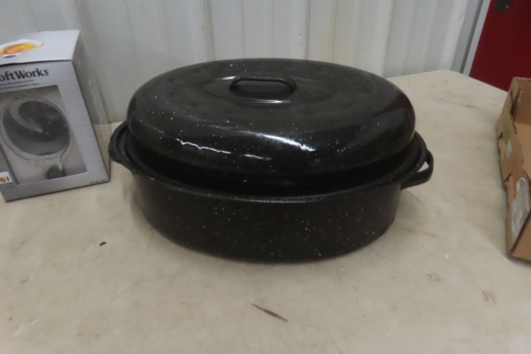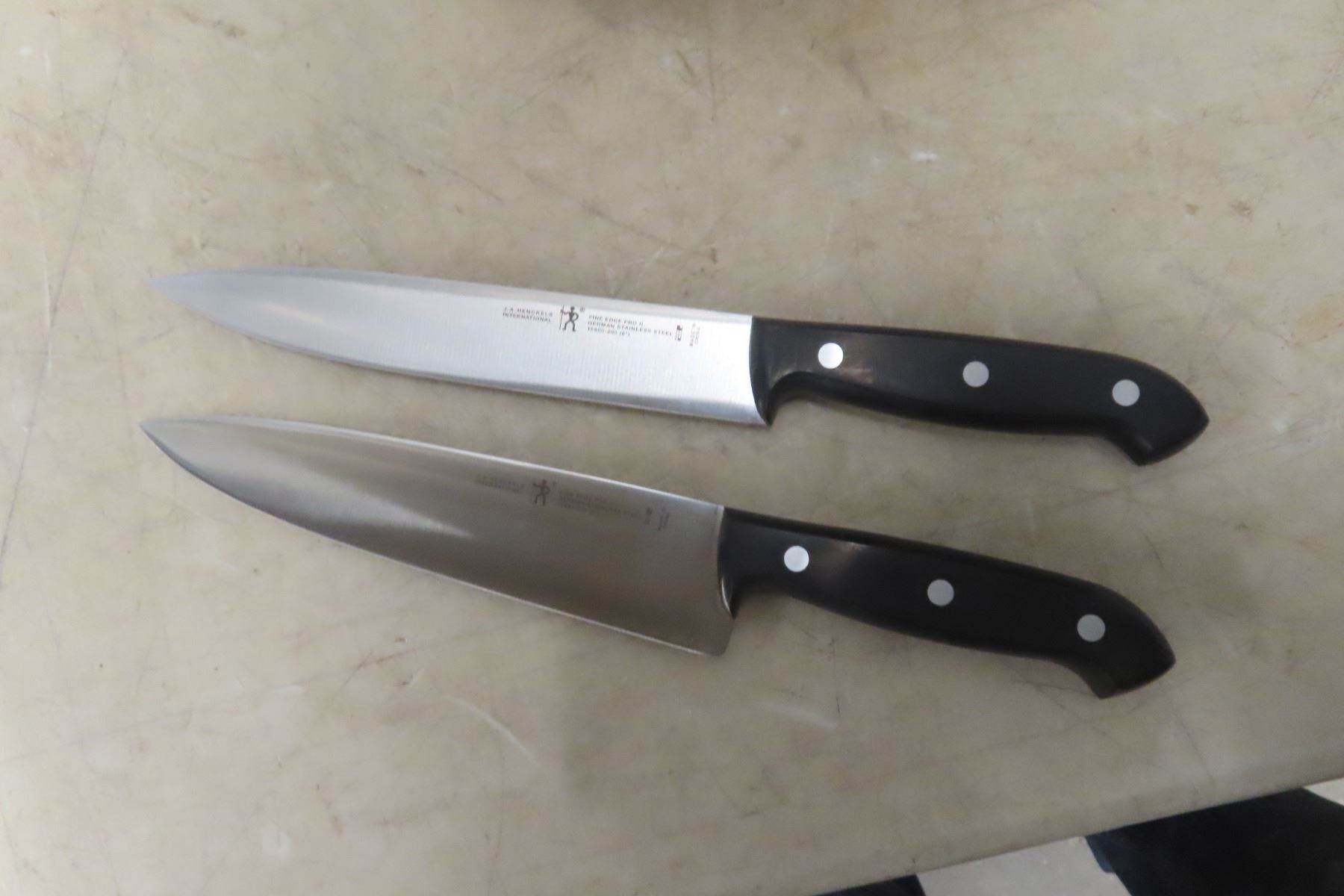 Roaster, Henckels Knife Set on Block, New Measuring Cup & Strainer