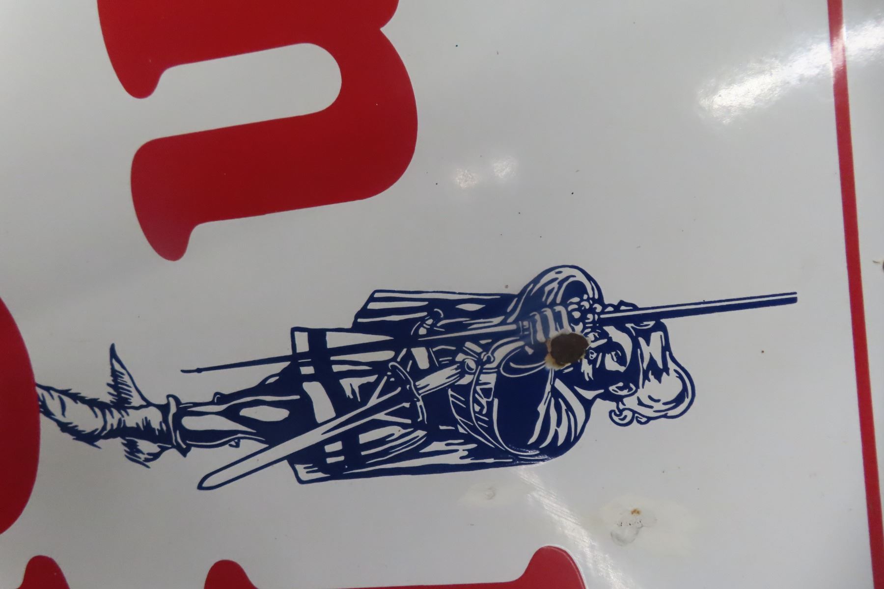 Robin Hood Flour Porcelain Sign 30'' x 72'' with Graphics of Musketeer