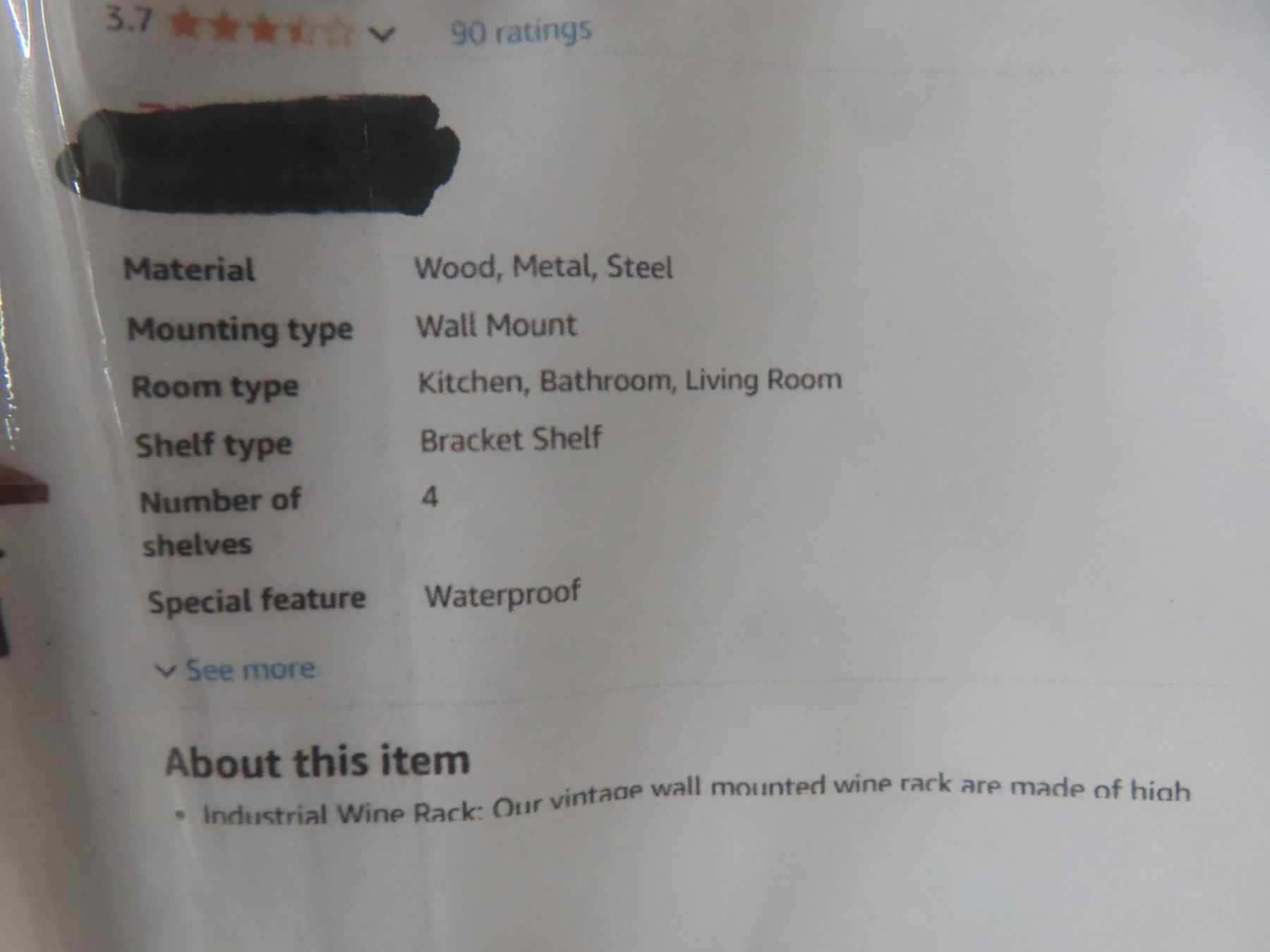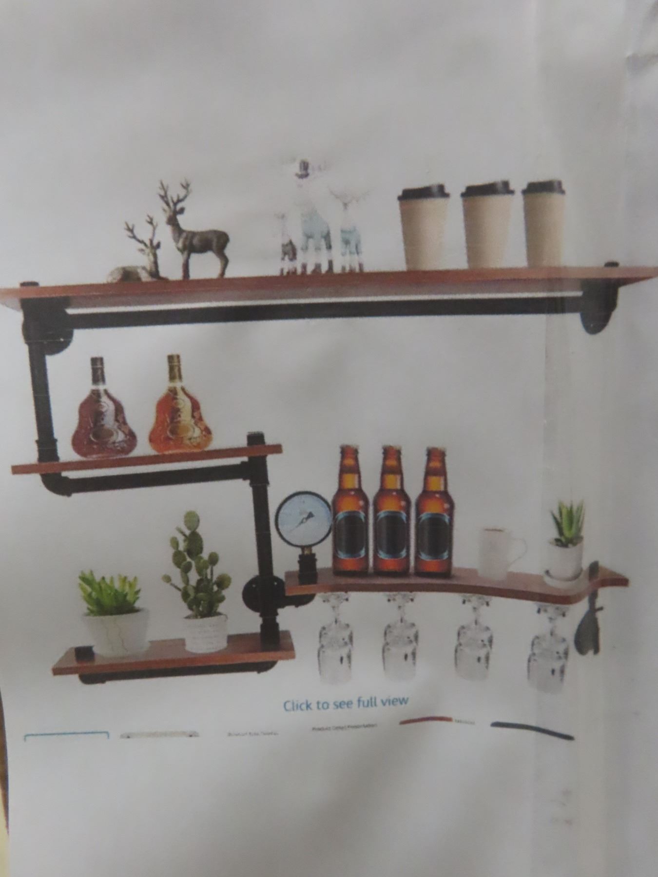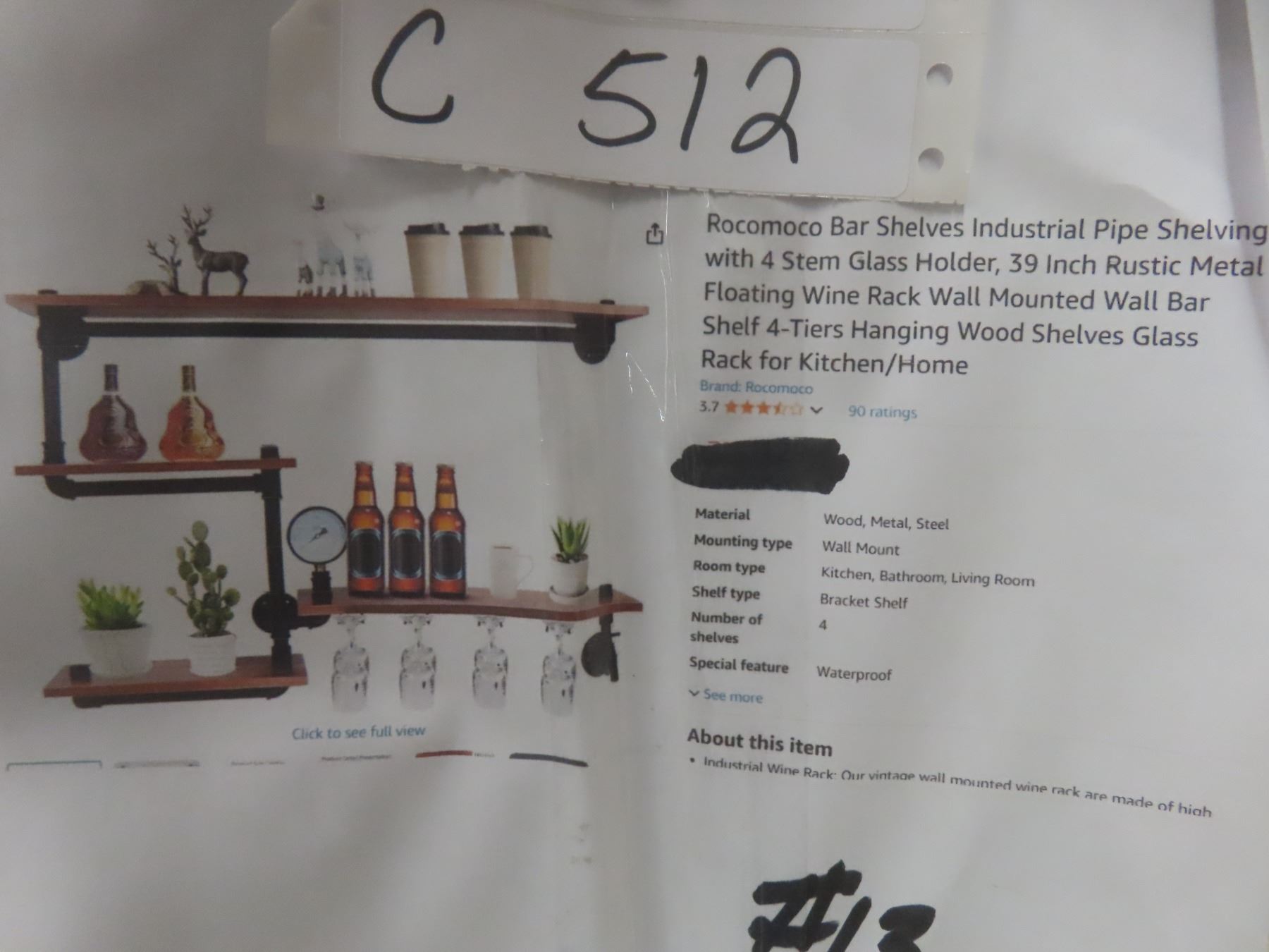 Rocomoco Bar Shelves Industrial Pipe Shelving with 4 Stem Glass Holder, 39 Inch Rustic Metal Floating Wine Rack Wall Mounted Wall Bar Shelf 4-Tiers Hanging Wood Shelves Glass Rack for Kitchen/Home