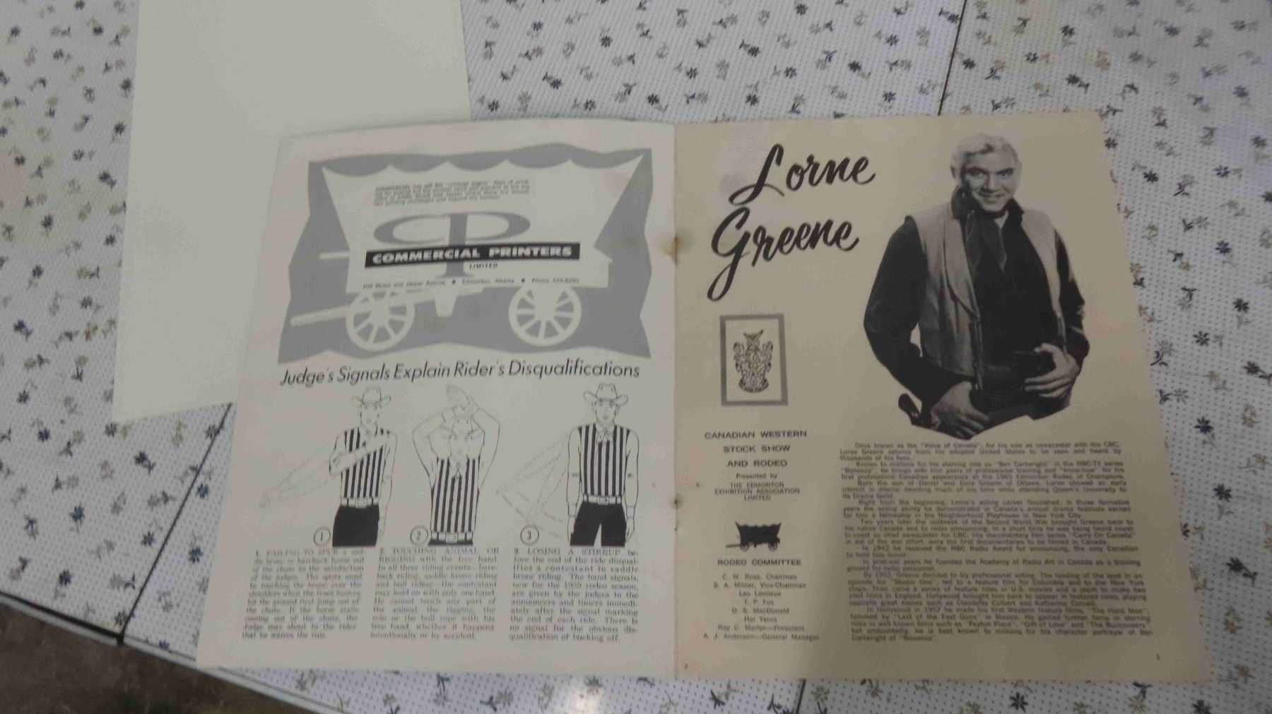Rodeo of Champions 1965 Program Edmonton Gardens with Lorne Green Autograph