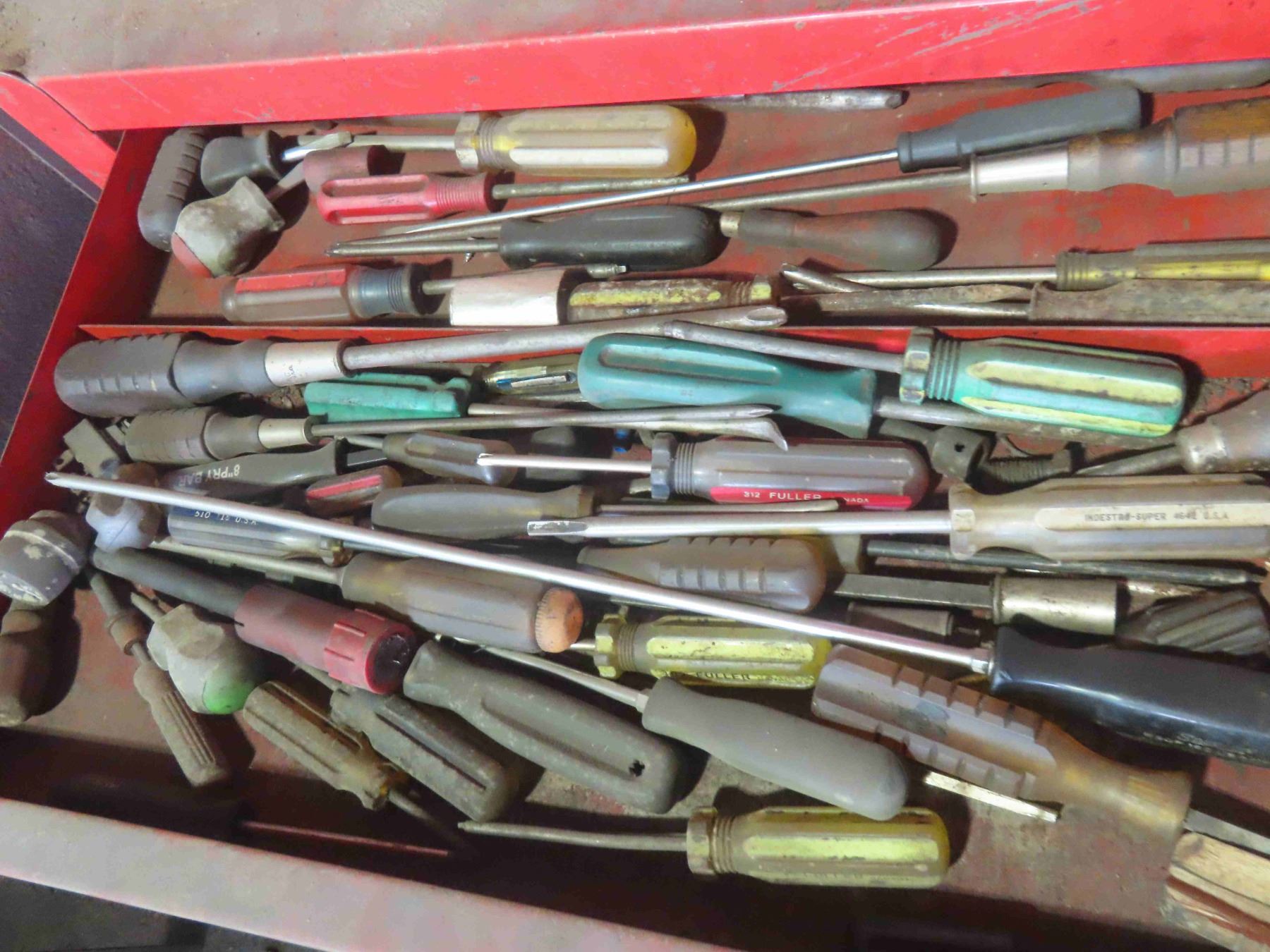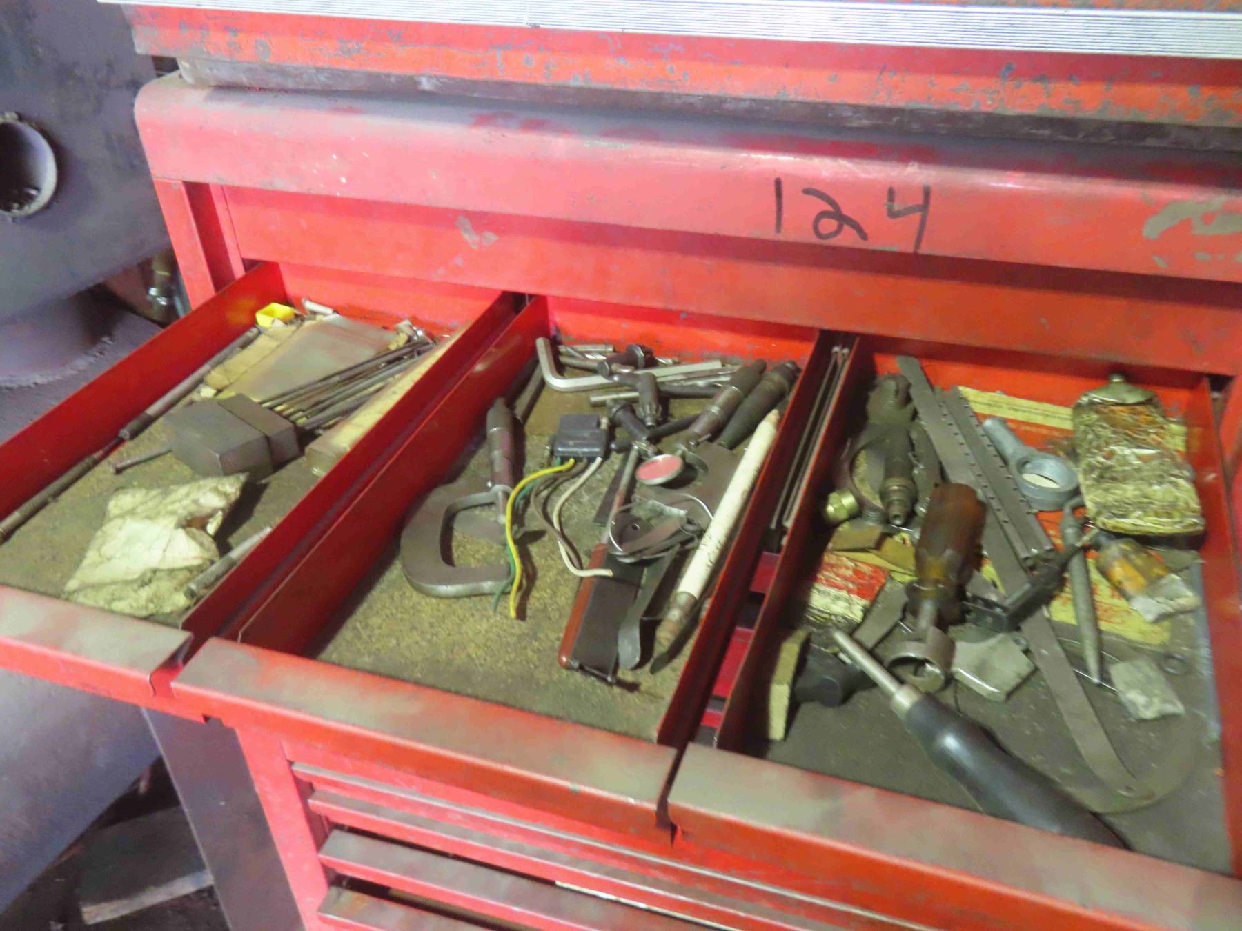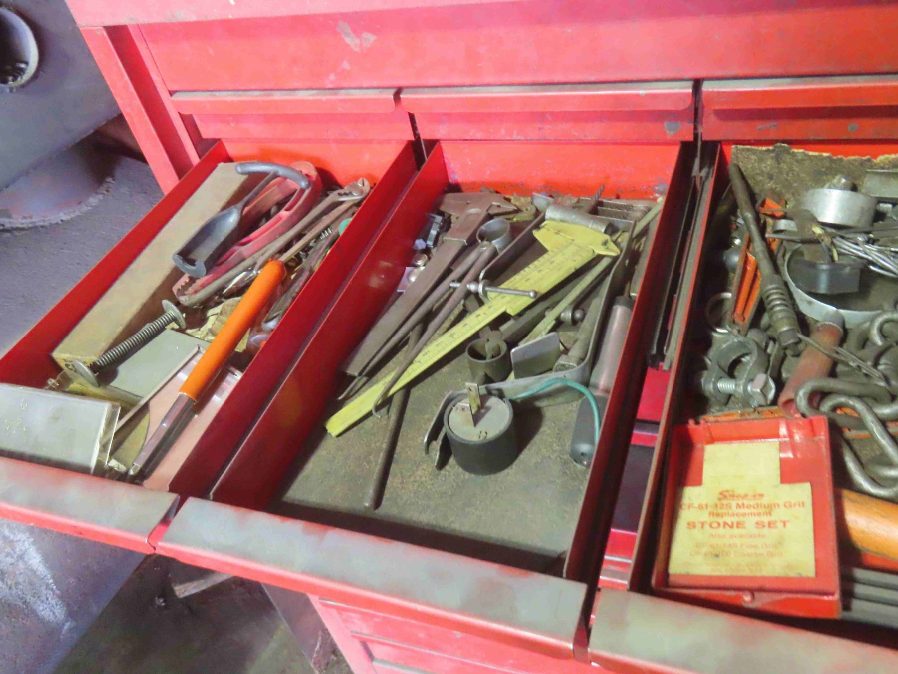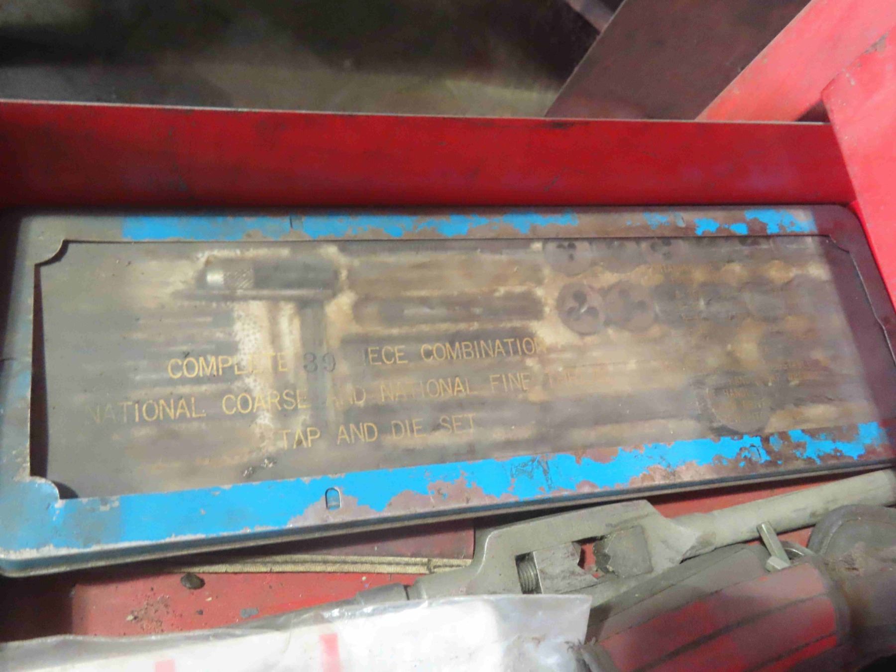 Rollaway 3 Piece Cabinet With C-clamps, Tap&Die Set, Reamers, Sockets, Tube Cutters, Flaring Tool, Screwdrivers, Speciality Tools, Snap Rings, Bushing Drivers, Micrometers, Calipers, Feeder Gauges, Files, Punches & Allen Wrenches