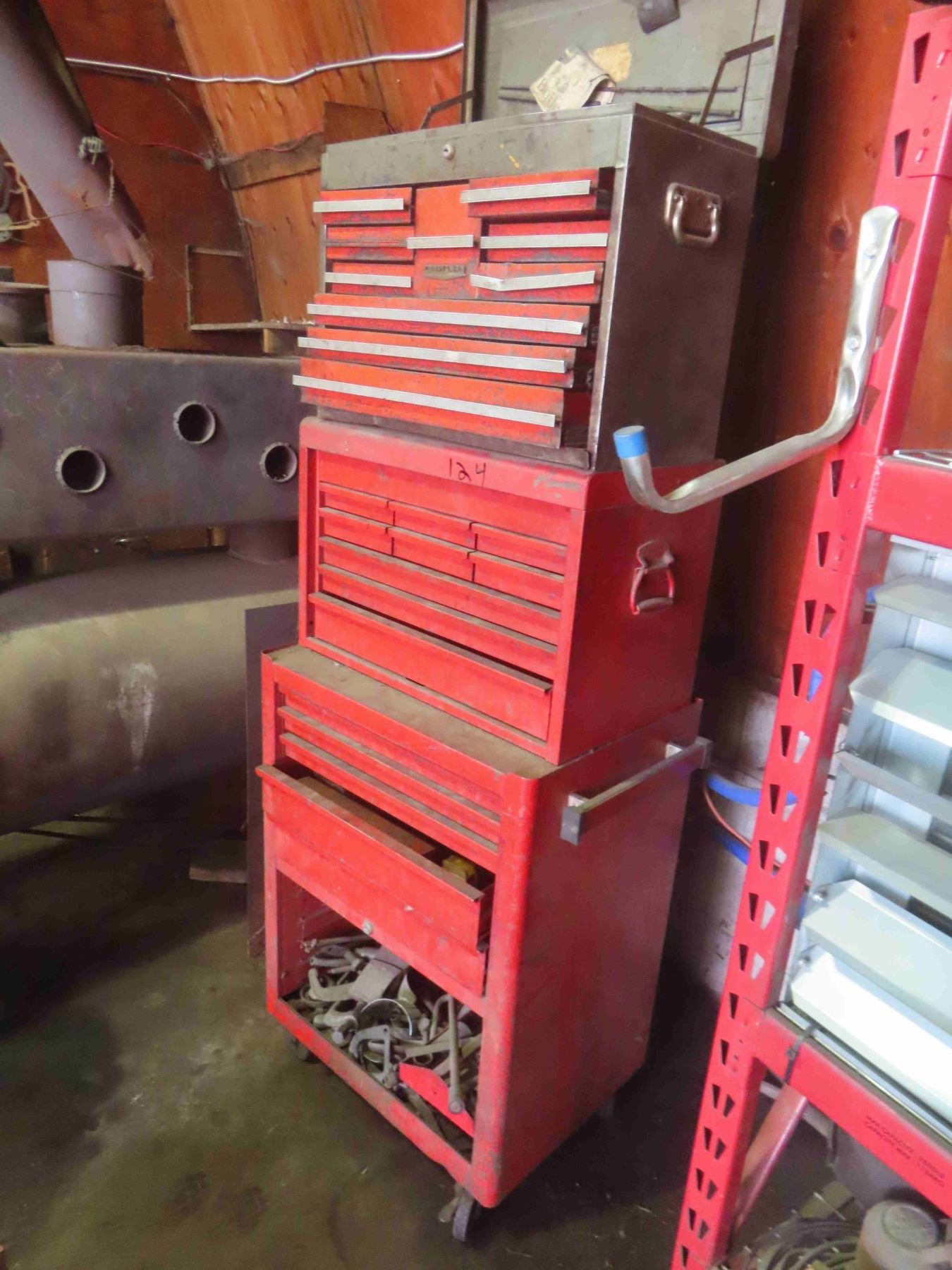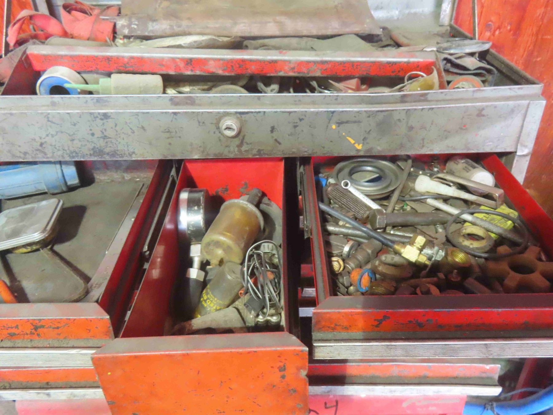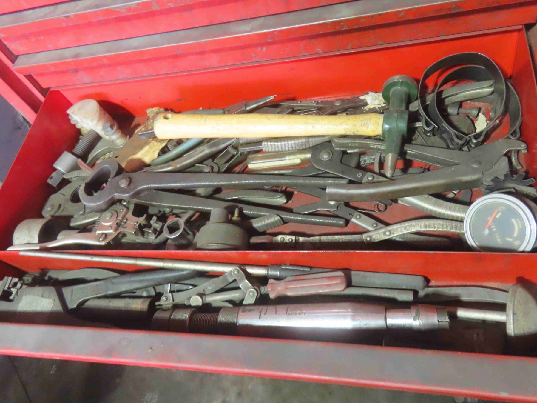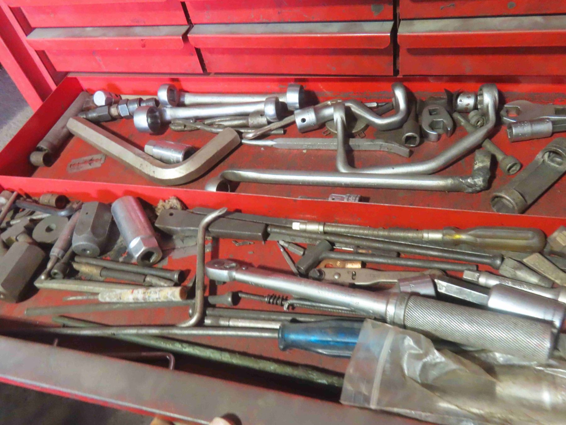 Rollaway 3 Piece Cabinet With C-clamps, Tap&Die Set, Reamers, Sockets, Tube Cutters, Flaring Tool, Screwdrivers, Speciality Tools, Snap Rings, Bushing Drivers, Micrometers, Calipers, Feeder Gauges, Files, Punches & Allen Wrenches