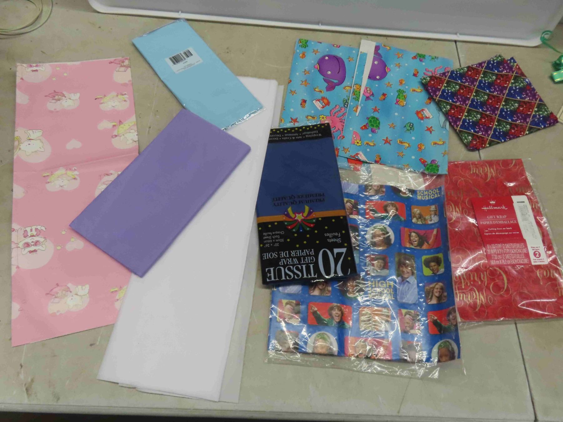 Rolls of Gift Wrap, Tags, Bows & Storage Tote