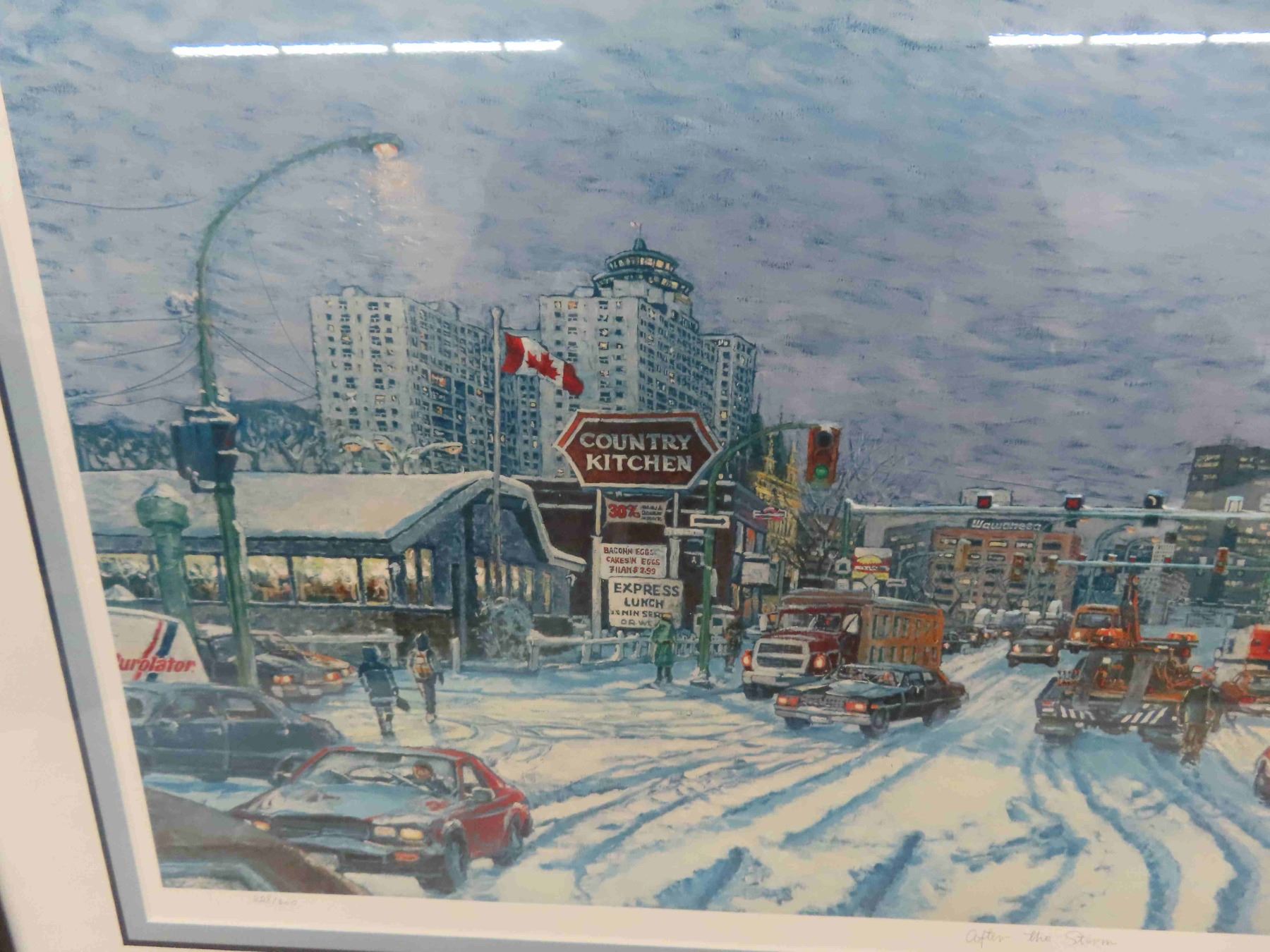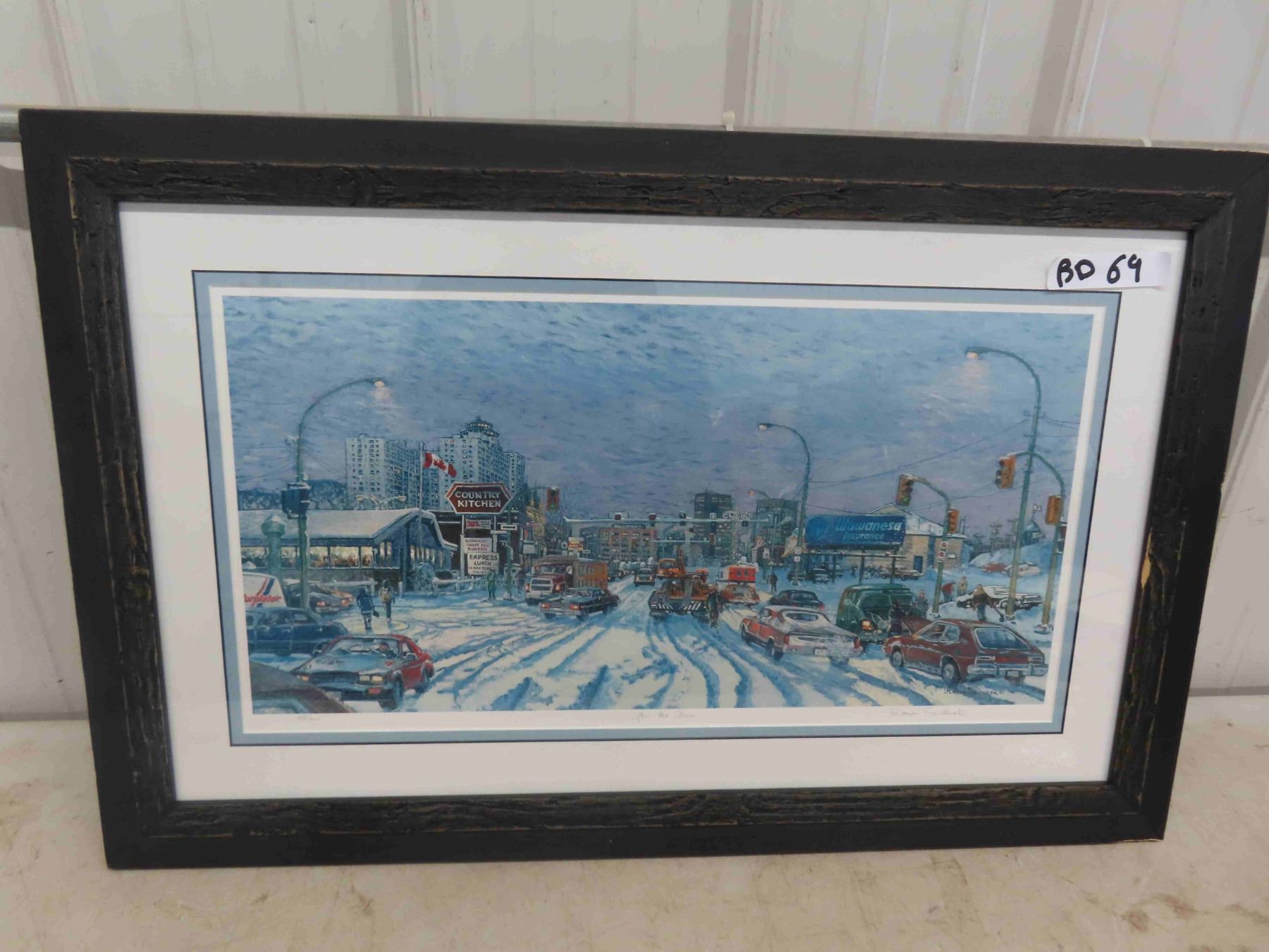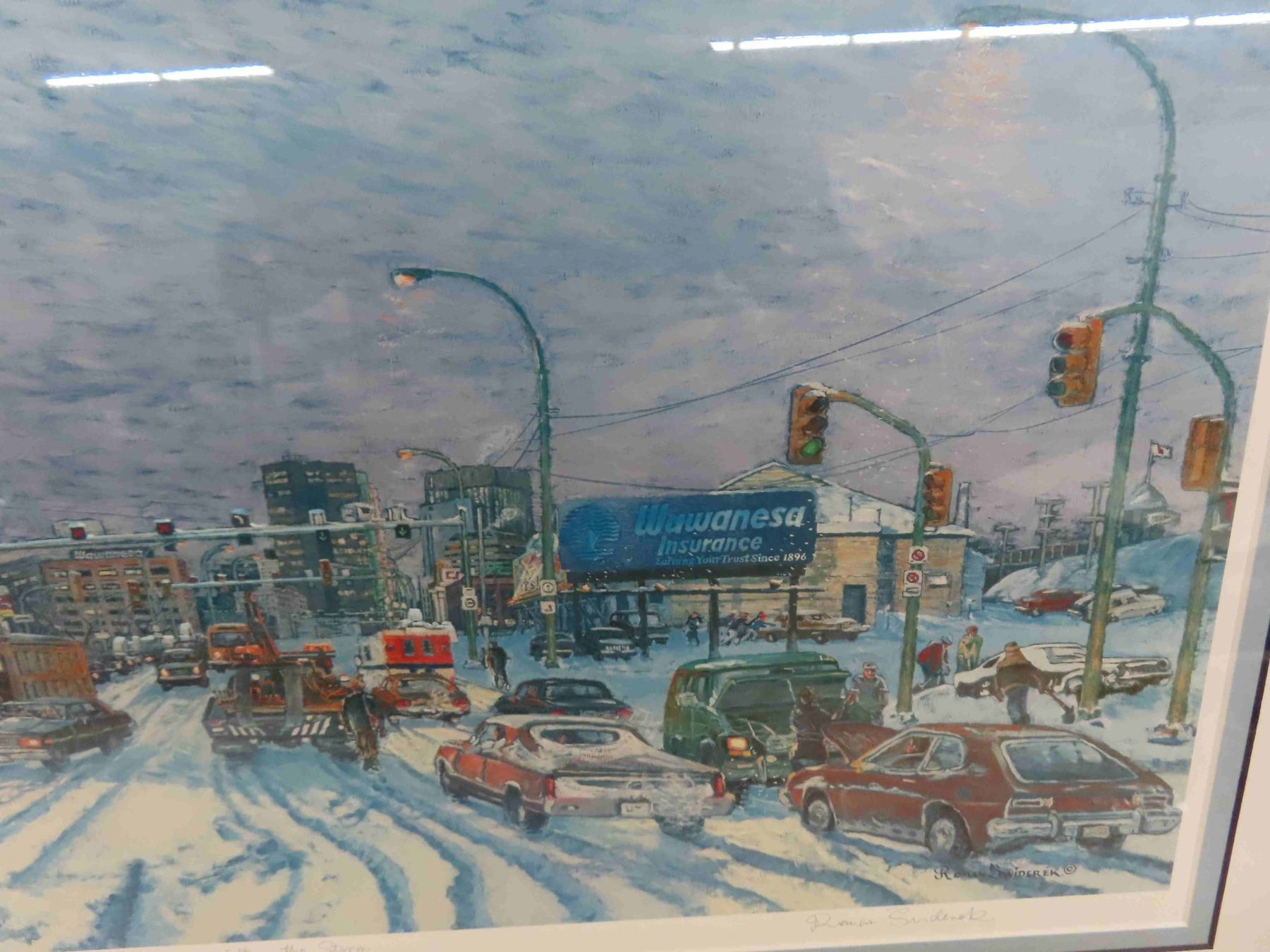 Roman Swiderek Pro Framed Limited Edition Print Winnipeg View Main St from Norwood Bridge ' After the Storm' - Signed + Numbered 21.25" x 33"
