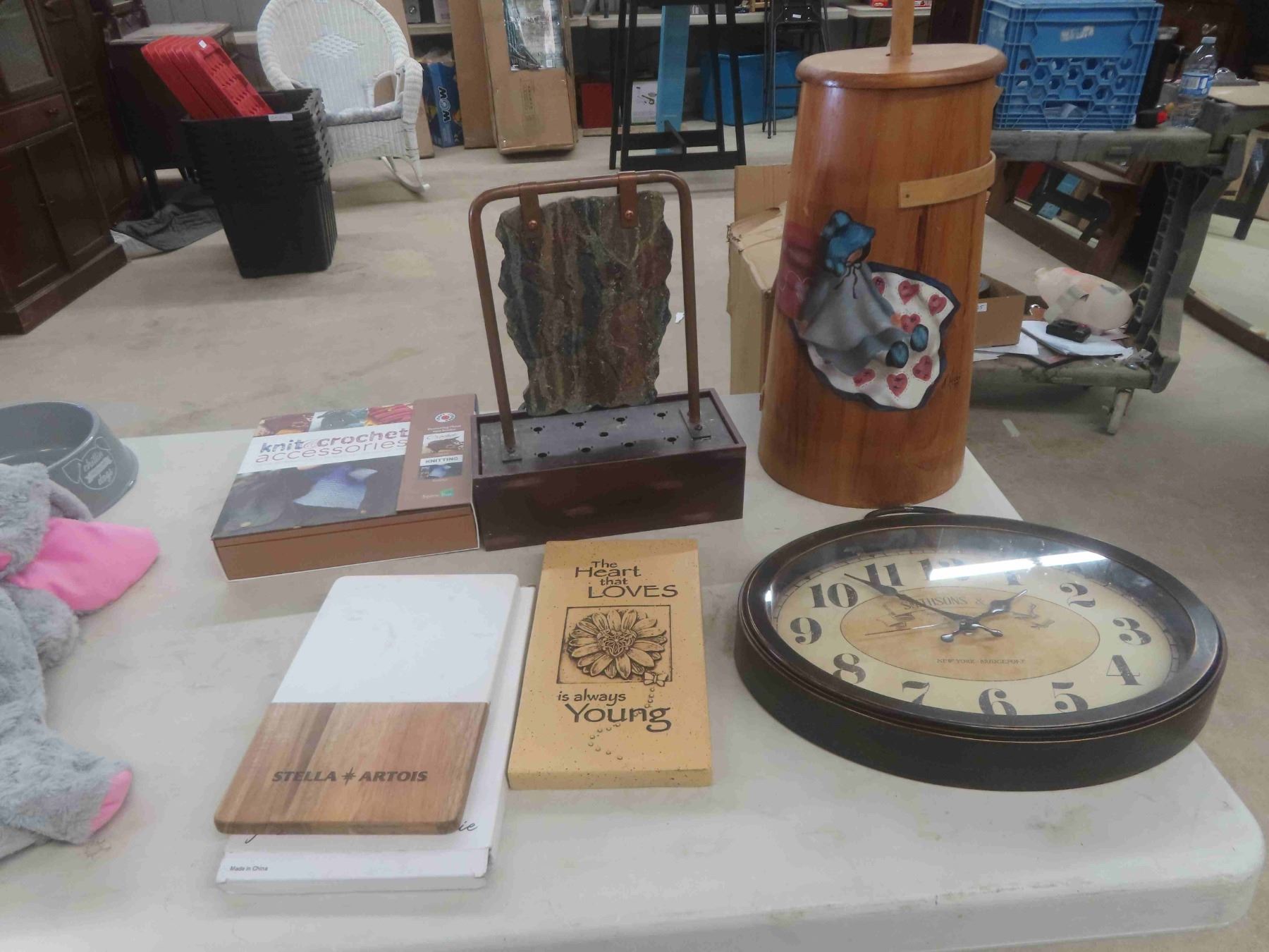 Room Décor: Clock, Decorative Butter Churn, Slogan Wall Hanging & More