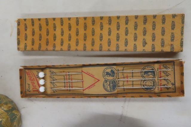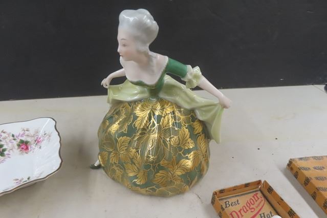 Rosenthal Empire Dancer, Royal Albert Dish, Dragon Hat Pins in Box plus more