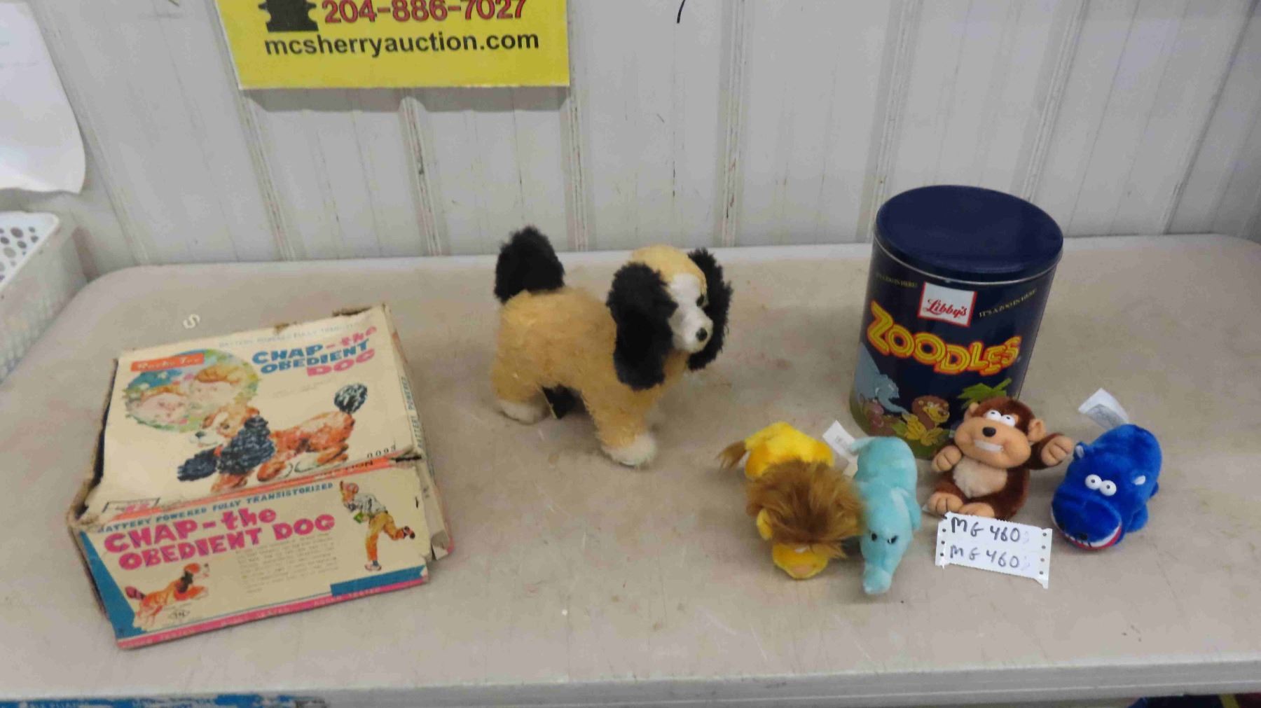 Rosko Battery Powered Toys - Chap The Obedient Dog with Box, Libbys Zoodles Tin of Plush Toys