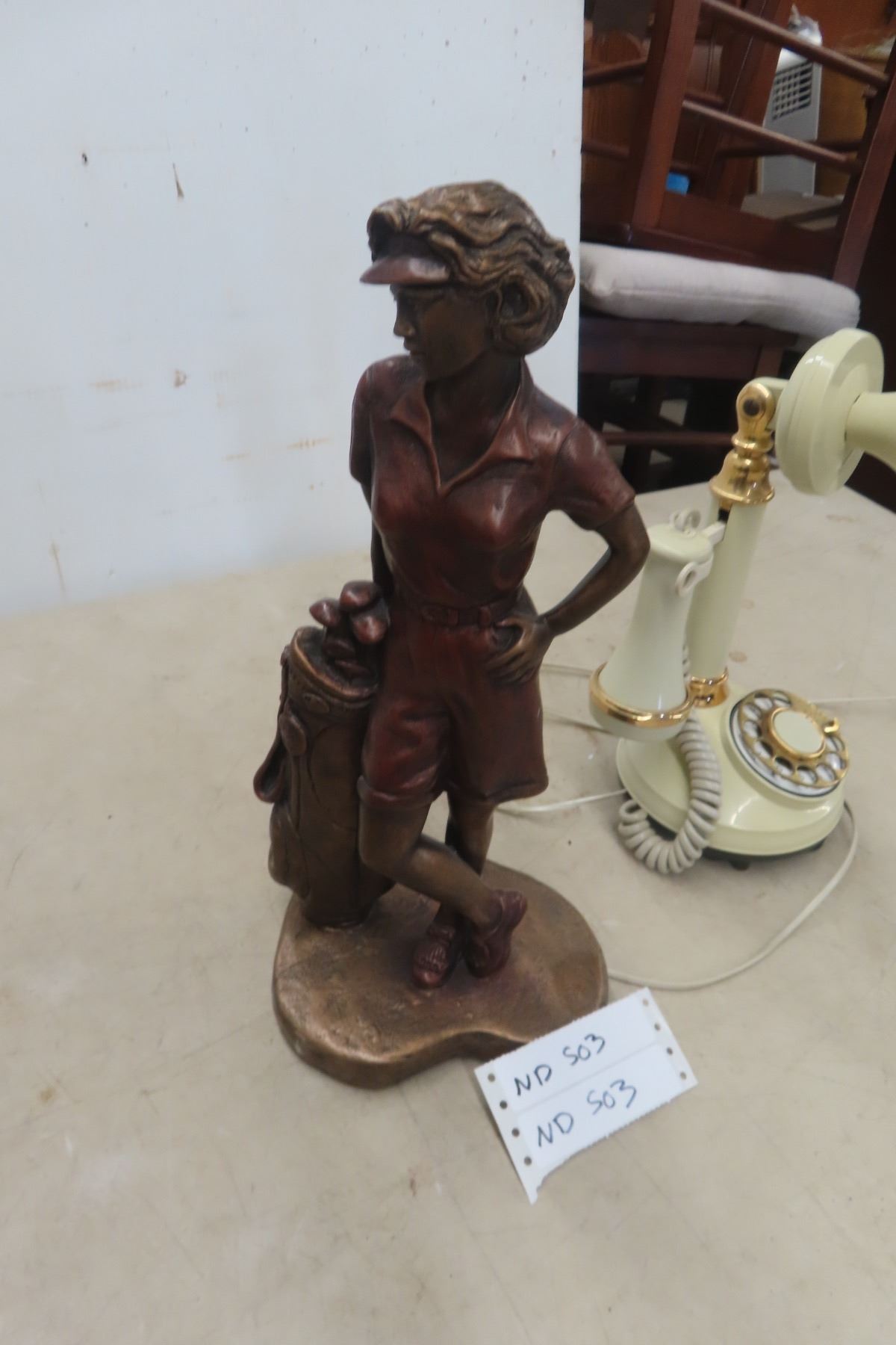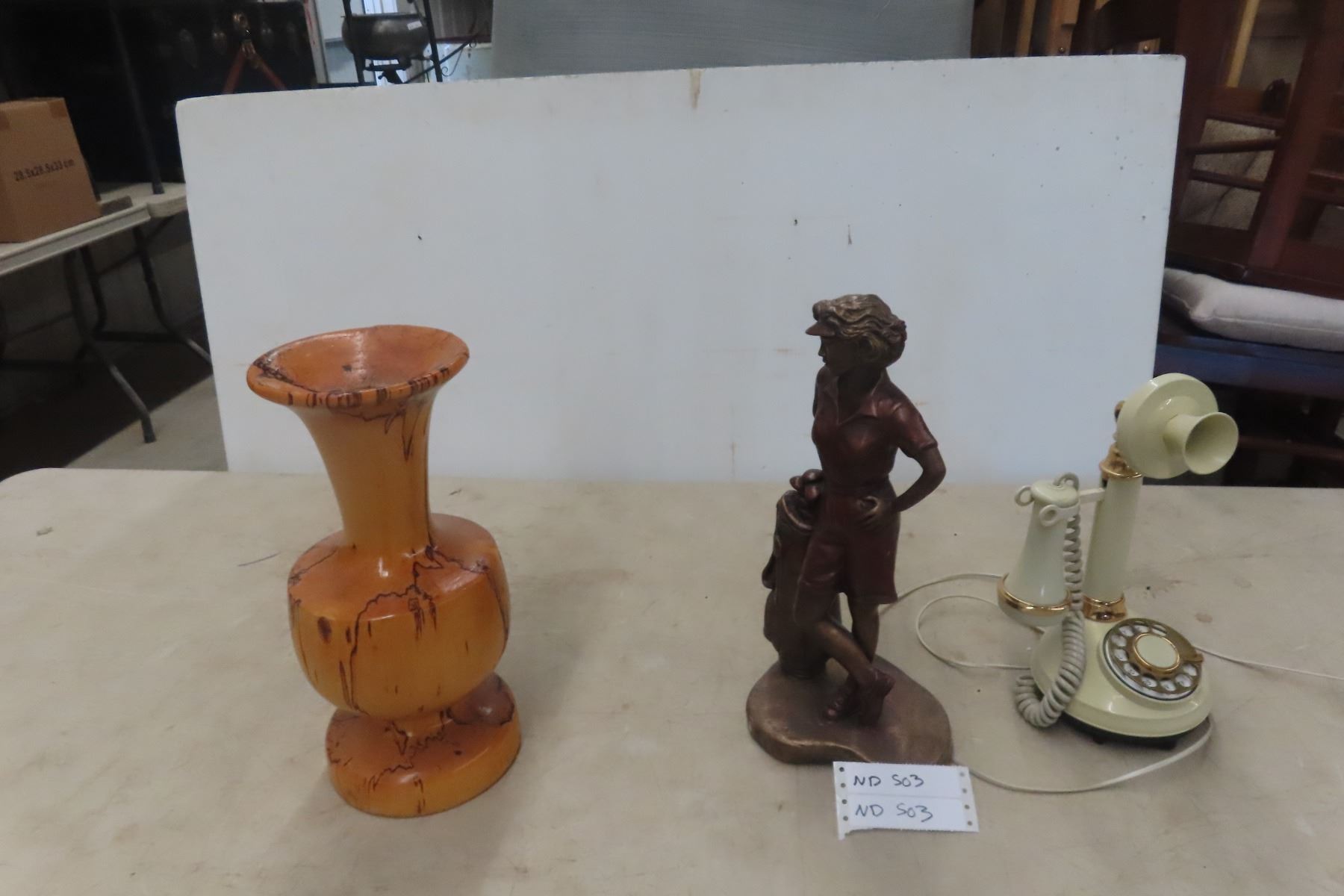 Rotary Desk Phone, Austin Sculpture of Lady Golfing, Wood Vase