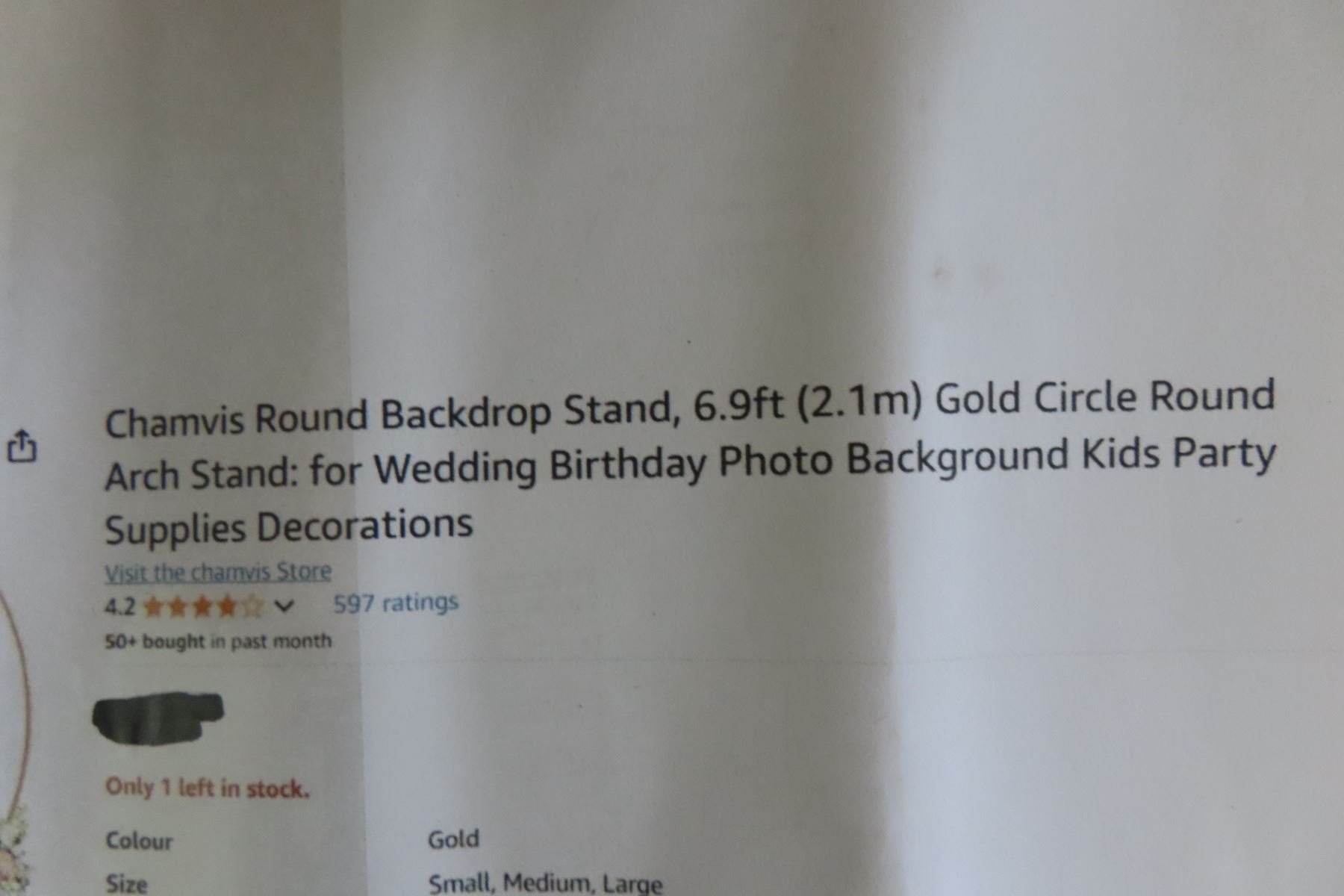 Round Back Drop Stand 6.9ft Gold Circle Round Arch Stand - New or Store Return