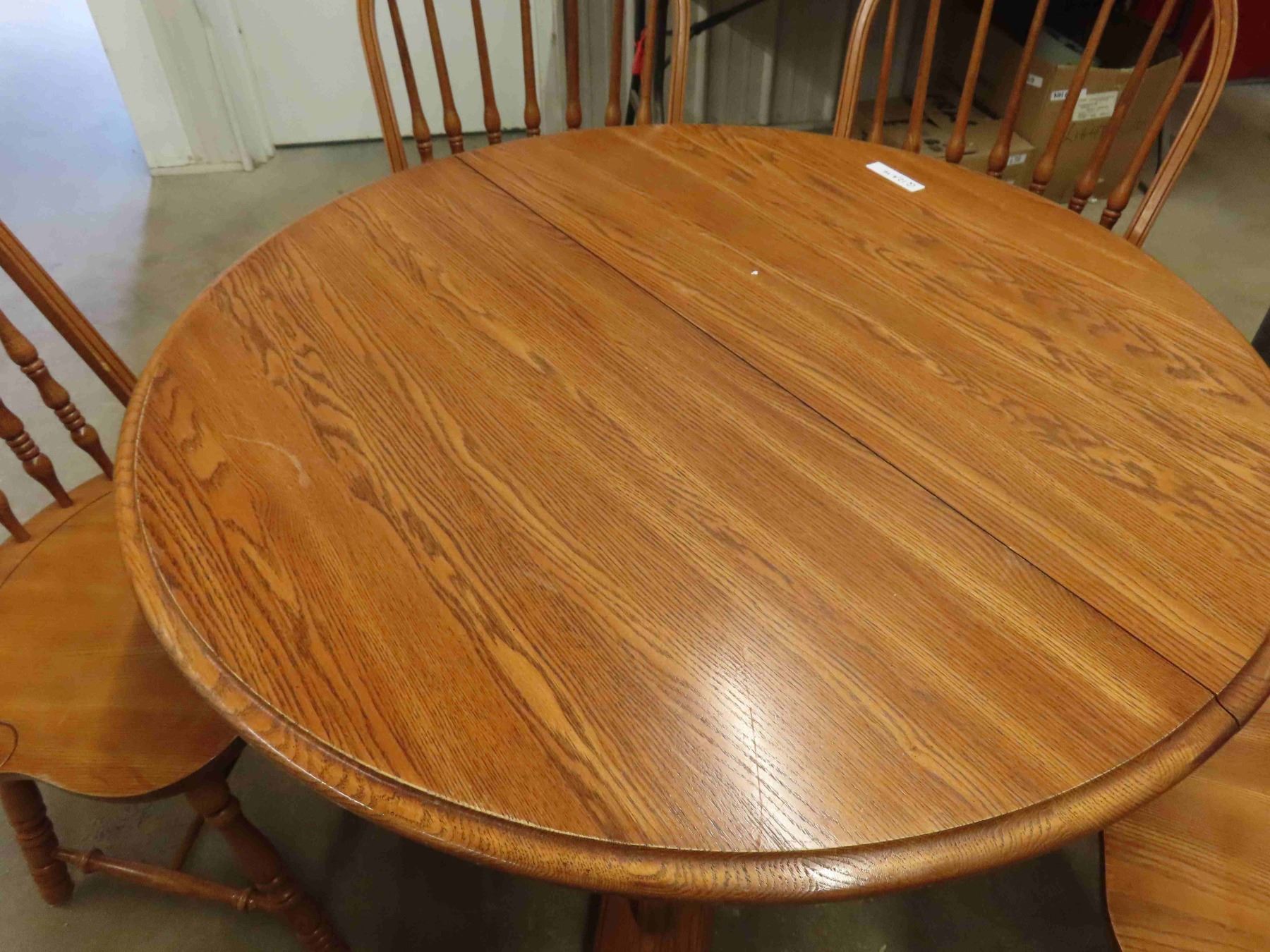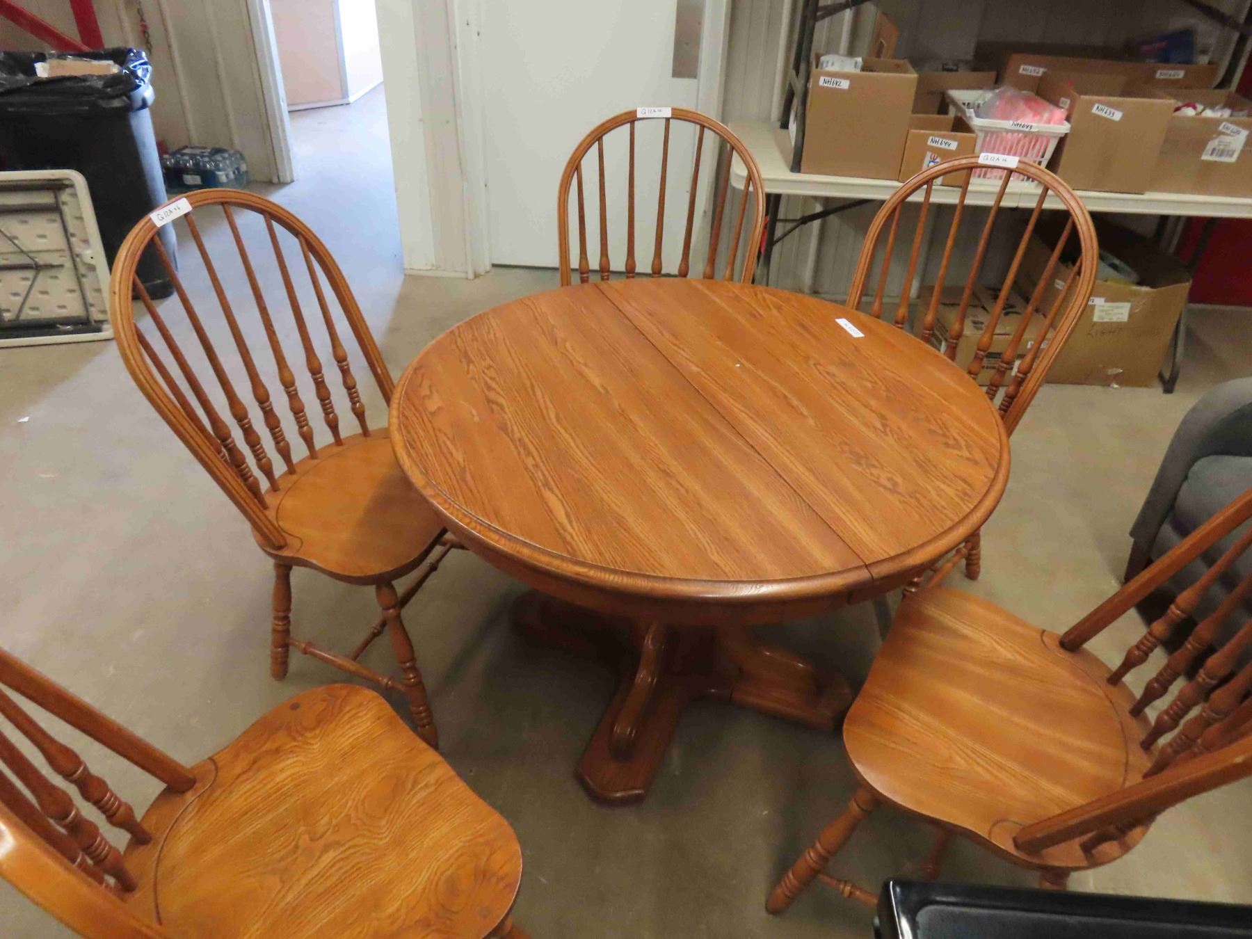 Round Oak Pedestal Kitchen / Dining Table 29.5" x 44" with 5 Chairs