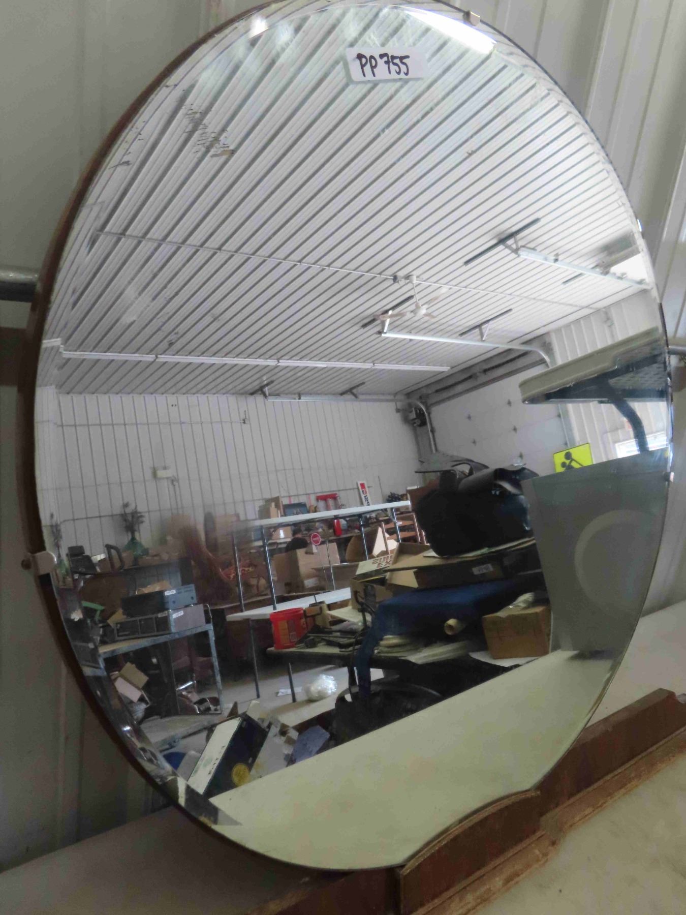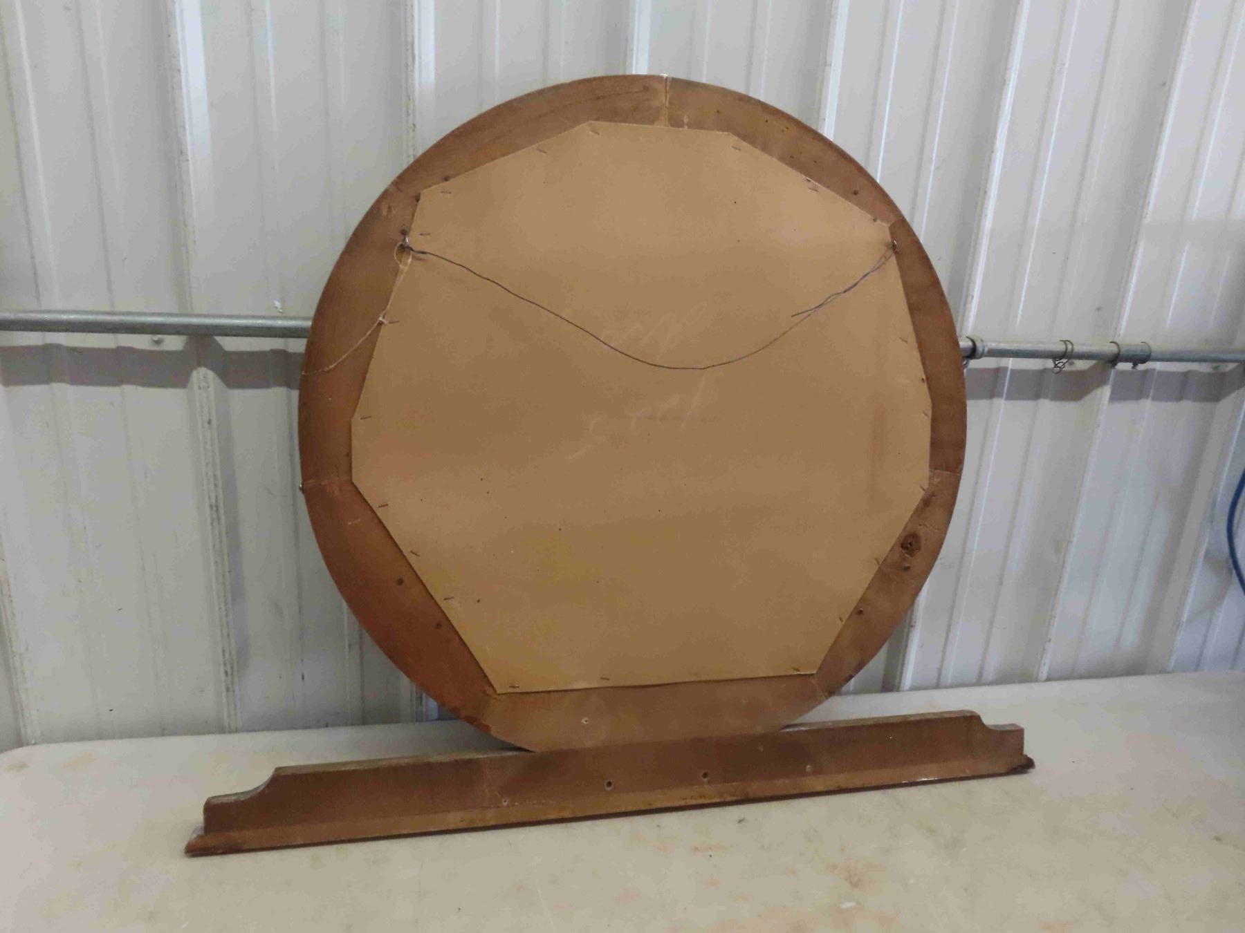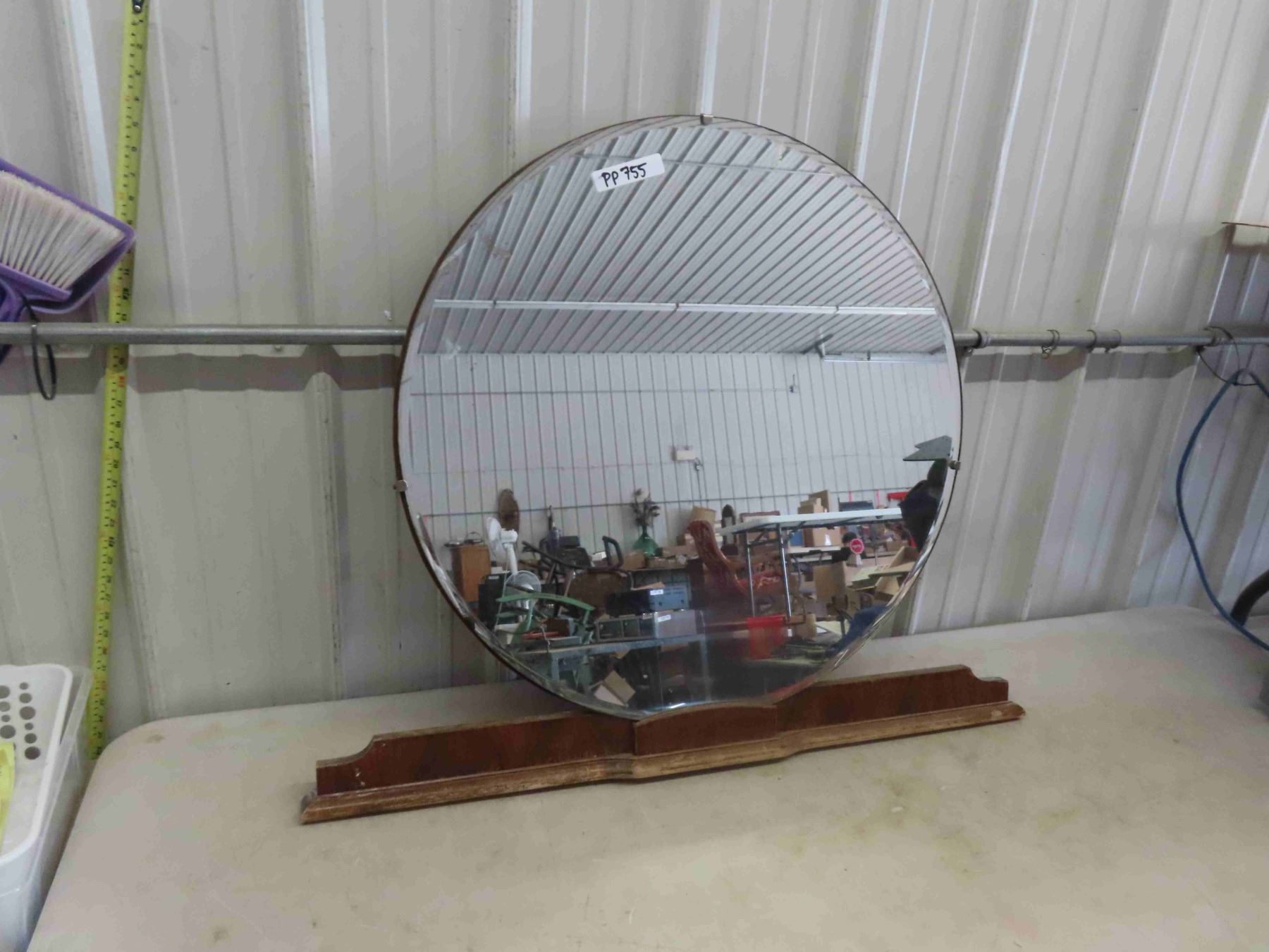 Round Vanity Bevelled Mirror with Wood Stand 30'' Diameter