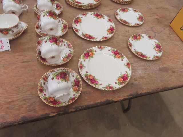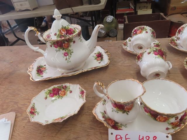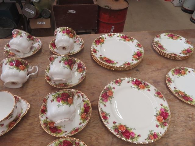 Royal Albert Items , 31 Old Countrry Roses pcs , Tea Pot, Cream + Sugar Set , Cup + Saucer Pairs