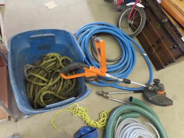 Rubber Garden Hose, Discharge Water Hose, Rope, 20 Volt Cordless Grass Trimmer Plus More!