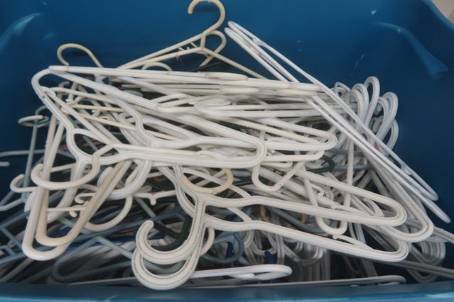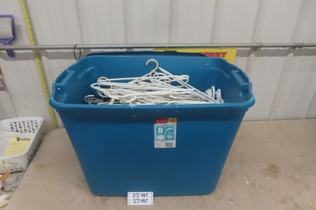 Rubbermaid 36 Gallon Large Tub Full of Plastic Hangers