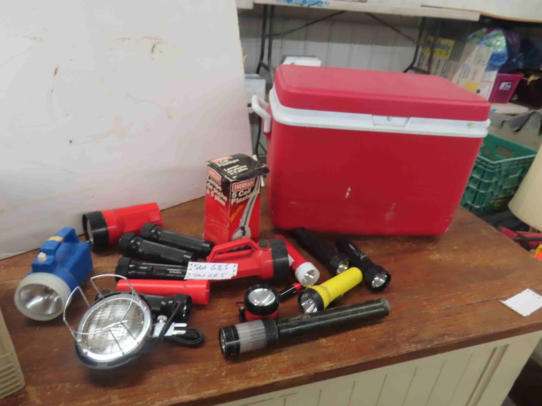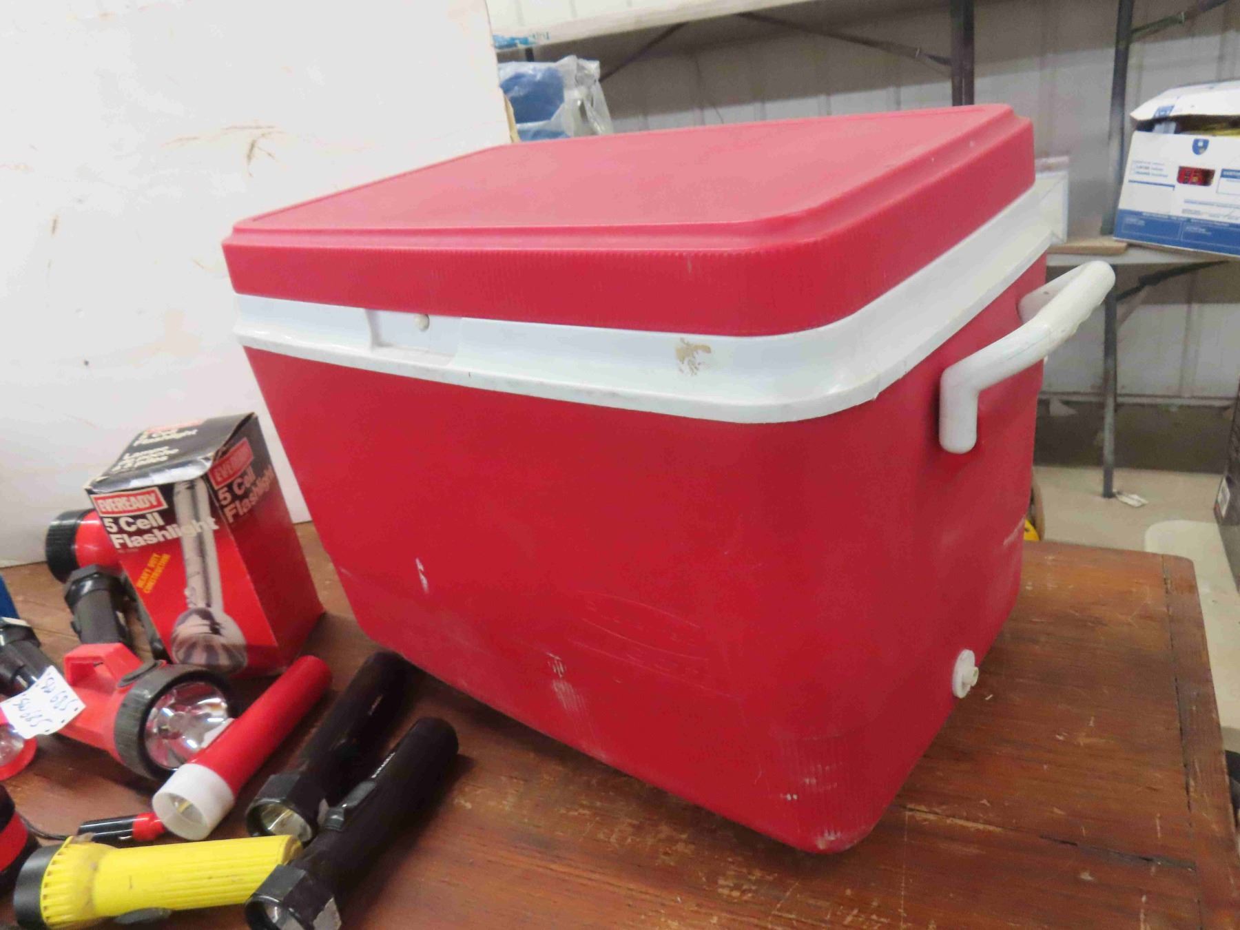 Rubbermaid Cooler & 16 Flashlights