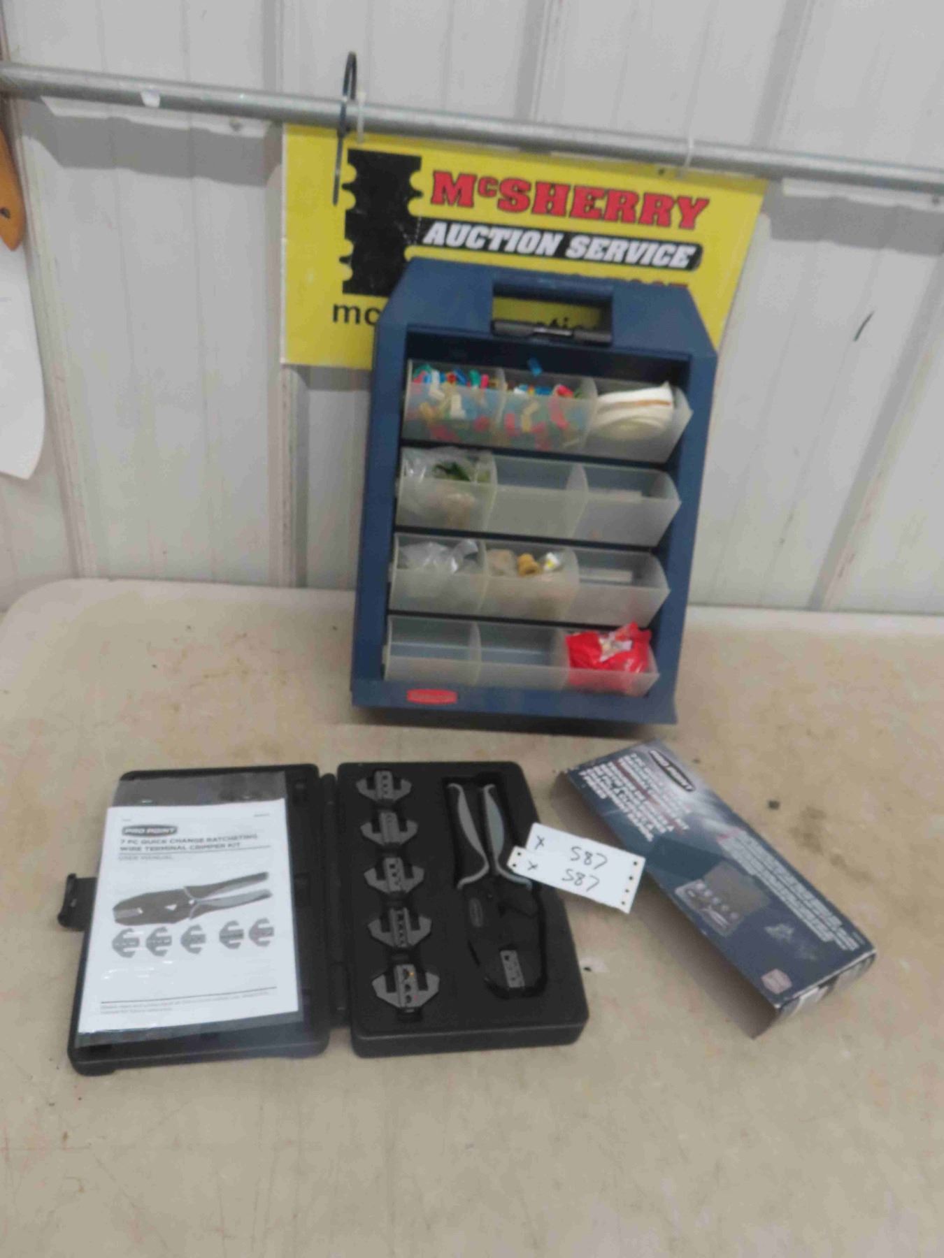Rubbermaid Organizer with; Dowels, Clips + Pro Point 7pc Quick Change Ratcheting Wire Terminal Crimper
