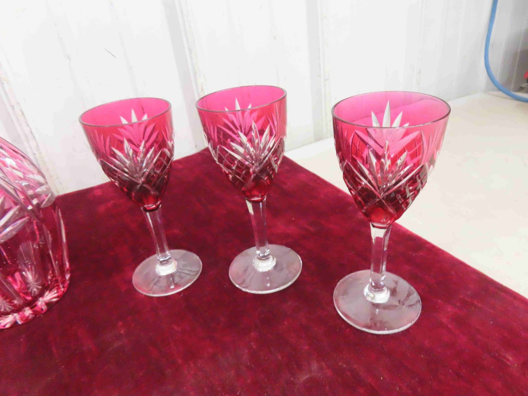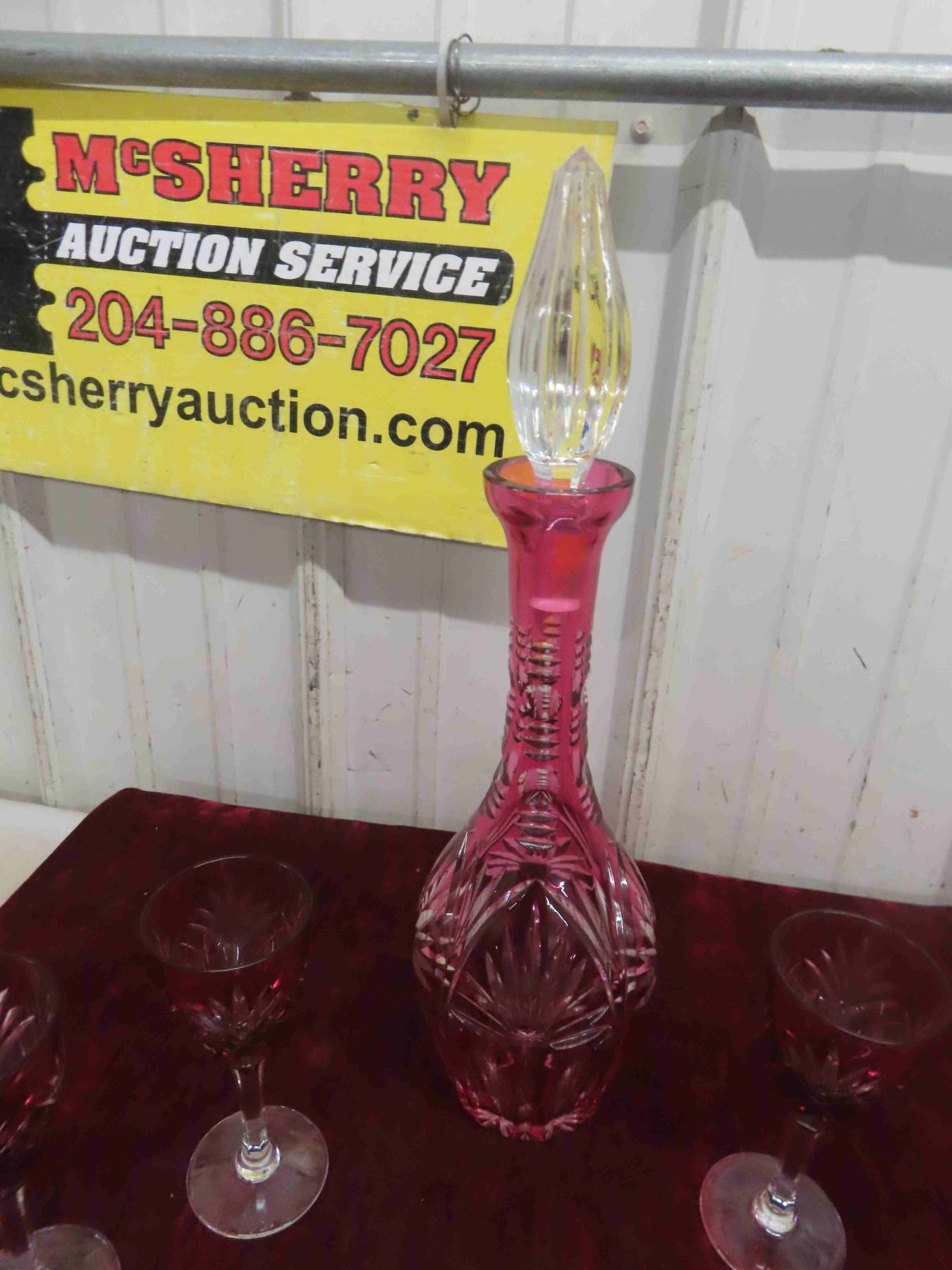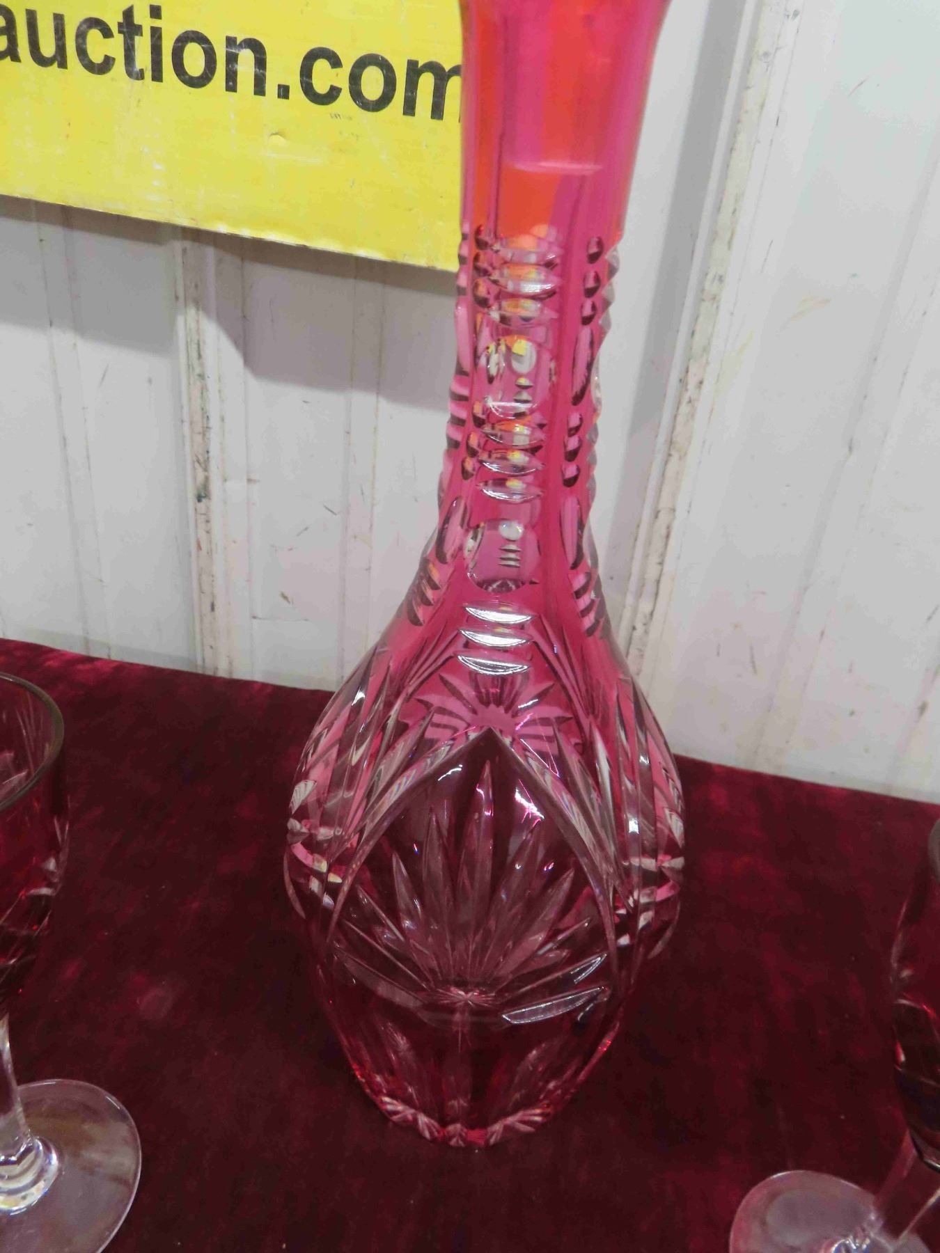 Ruby Decanter, 6 Goblets