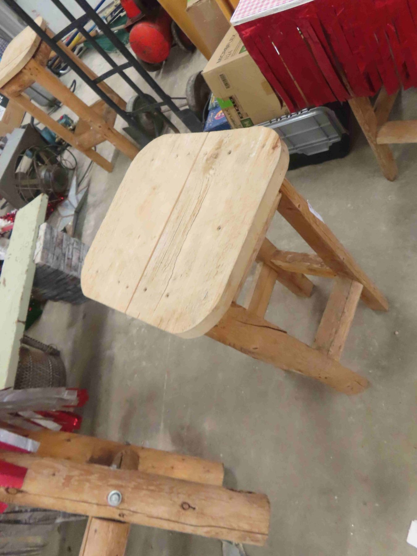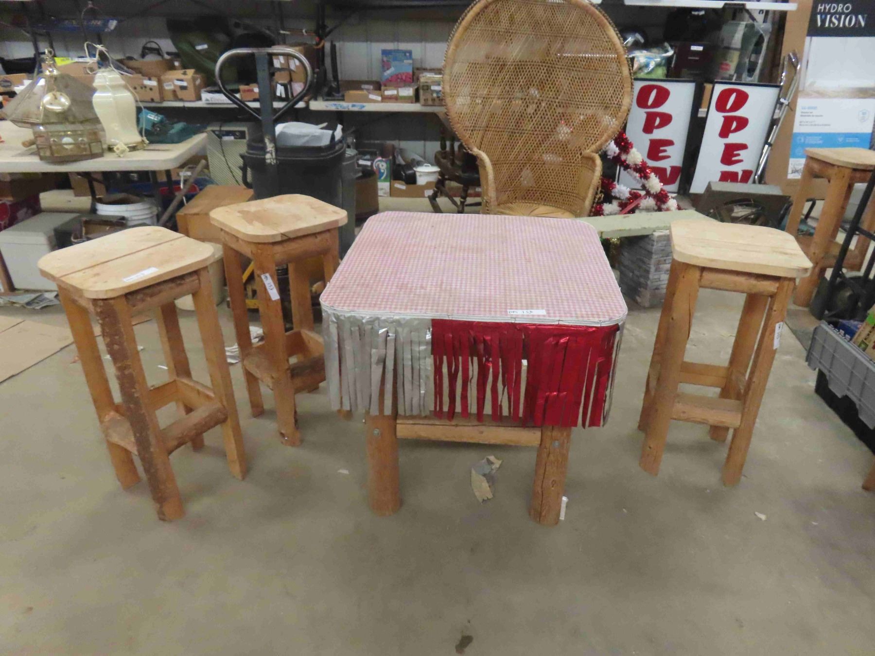 Rustic Cabin Wood Table + 3 Stools 29" x 30" x 30"
