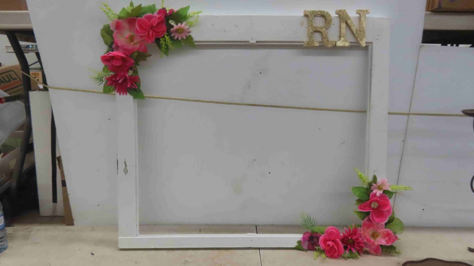 Rustic Wood Frame 33'' x 28'' , Wrought Iron 3 Candle Stand 22'' H