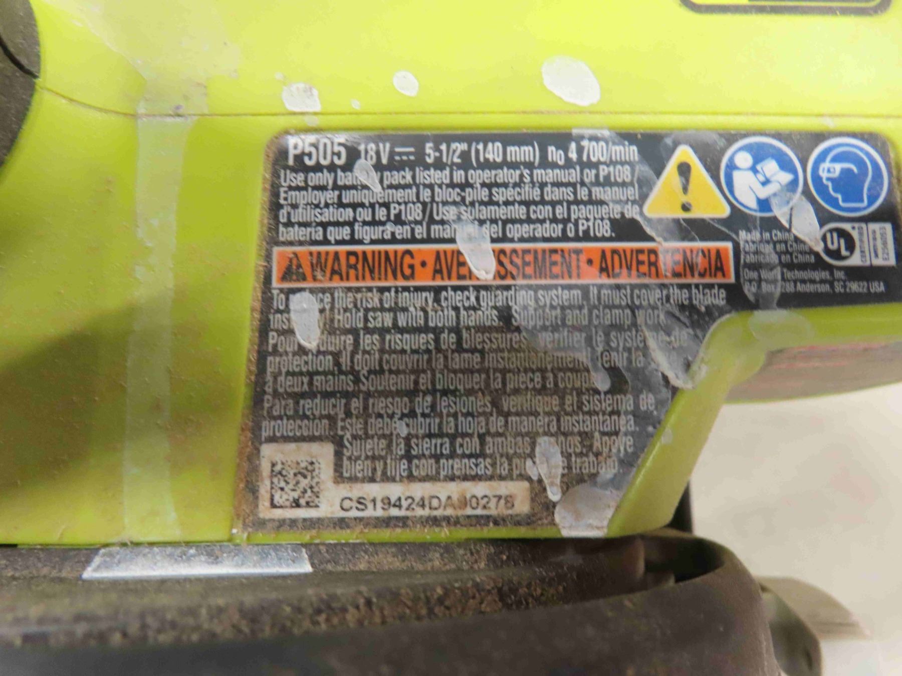 Ryobi 5 1/2'' Circular Saw , Ryobi Upright Vacuum , Bissel Upright Electric Vacuum - Both Ryobi Items are Missing Battery and Charger