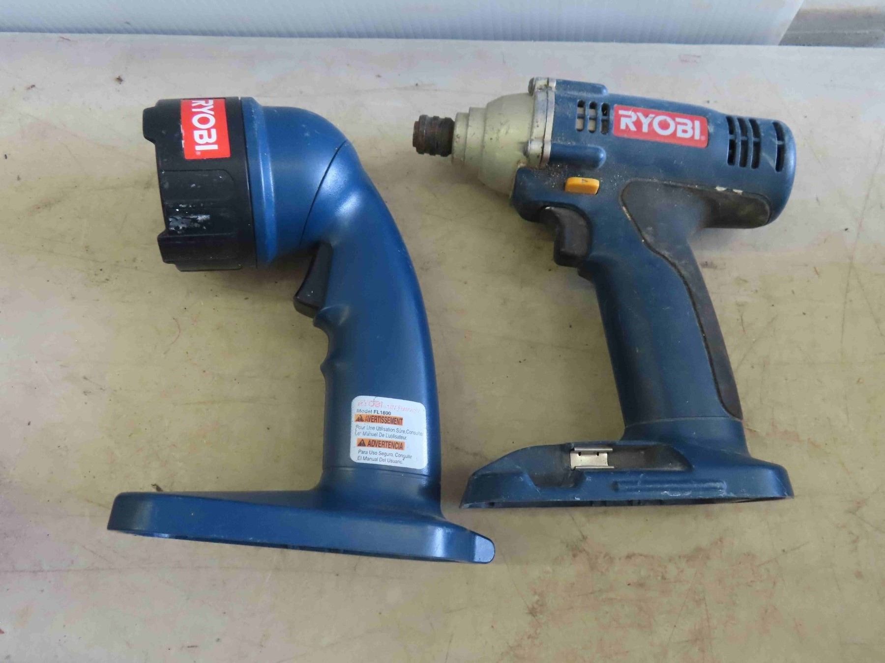Ryobi Cordless Tools No Batteries or Chargers, Ridgid Flashlight No Battery Or Charger, Craftsman 3/8'' Drill with Battery No Charger, 3 Power Tools: Angle Grinder, Stapler, Rotary Tool