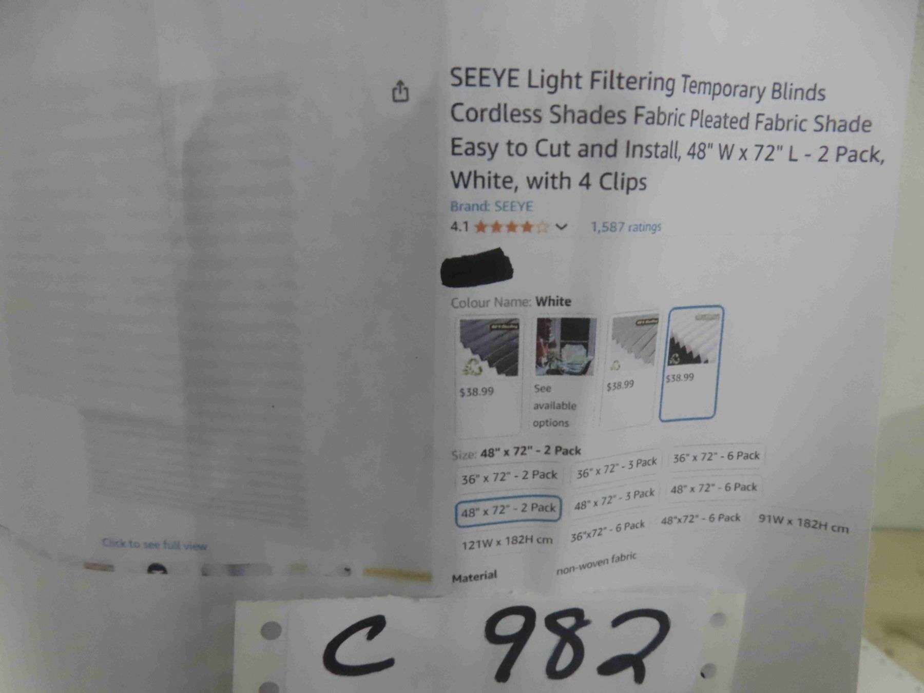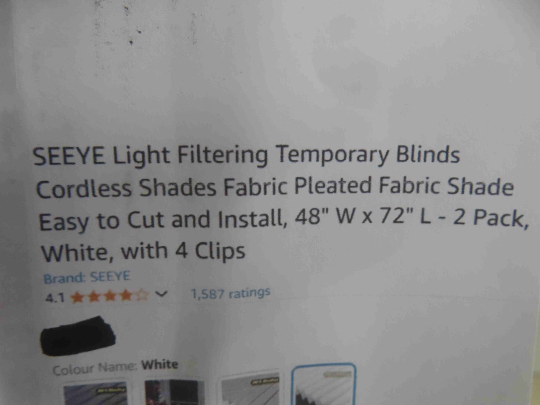 SEEYE Light Filtering Temporary Blinds Cordless Shades Fabric Pleated Fabric Shade Easy to Cut and Install, 48" W x 72" L - 2 Pack, White, with 4 Clips - New or Store Return