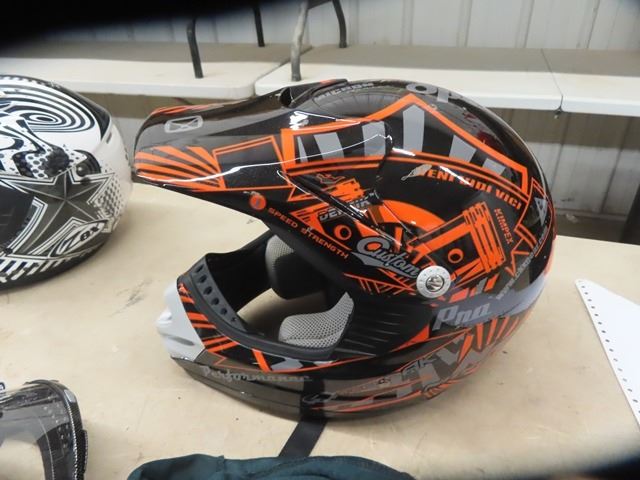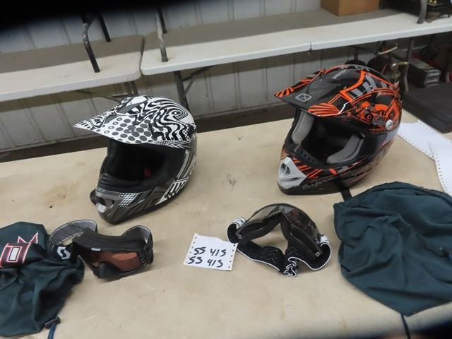 (SS) 2 Dirt Bike Helemts w Socks 1) Y L 1) Small - Good Condition