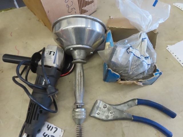 (SS) 2 New Mastercraft Folding Saw Horses, New Ridgid , RIviter, Grinder Plus More