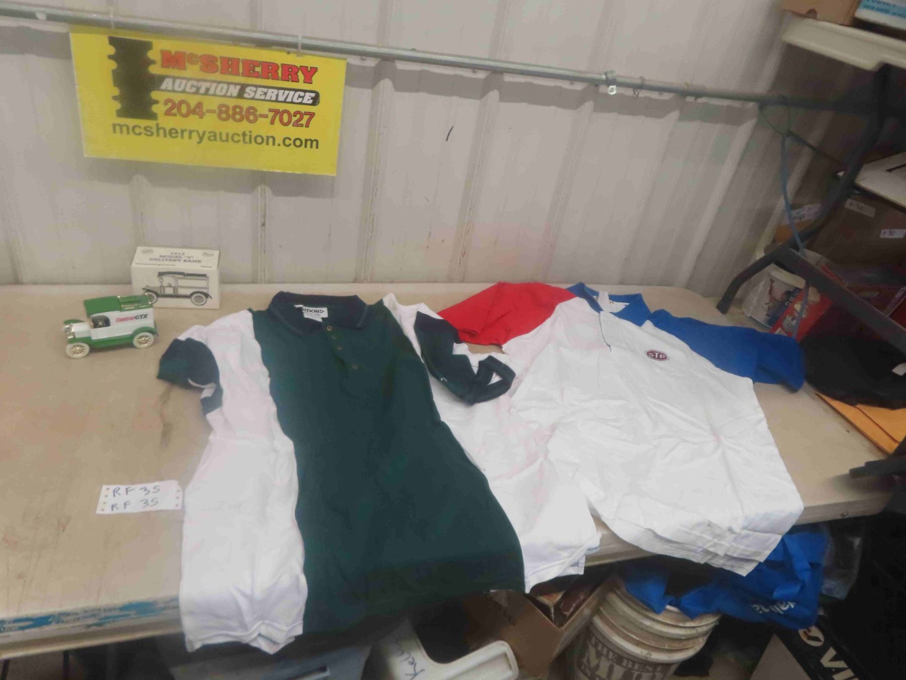 STP Large Golf Shirt, Tridon XL Golf Shirt, Castrol 1913 Model T Delivery Bank
