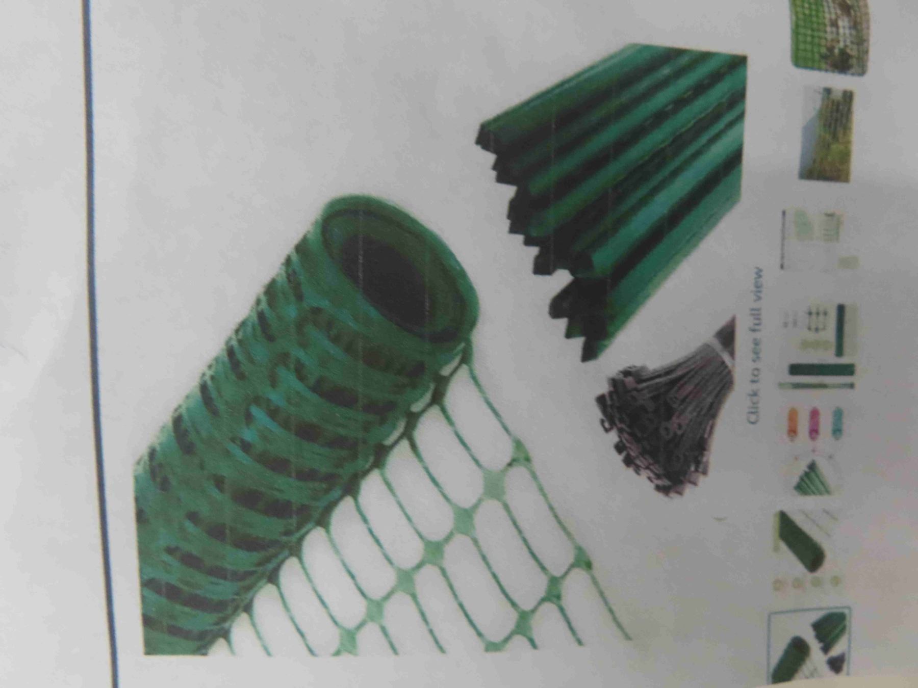 Safety Fence + 25 Steel Plant Stakes, Extra Strength Mesh Snow Fencing, Temporary Green Plastic Garden Netting 3.75 x100 Feet Fence & 25, 4 Foot Stakes, Above Ground Barrier for Construction Dogs - New or Store Return