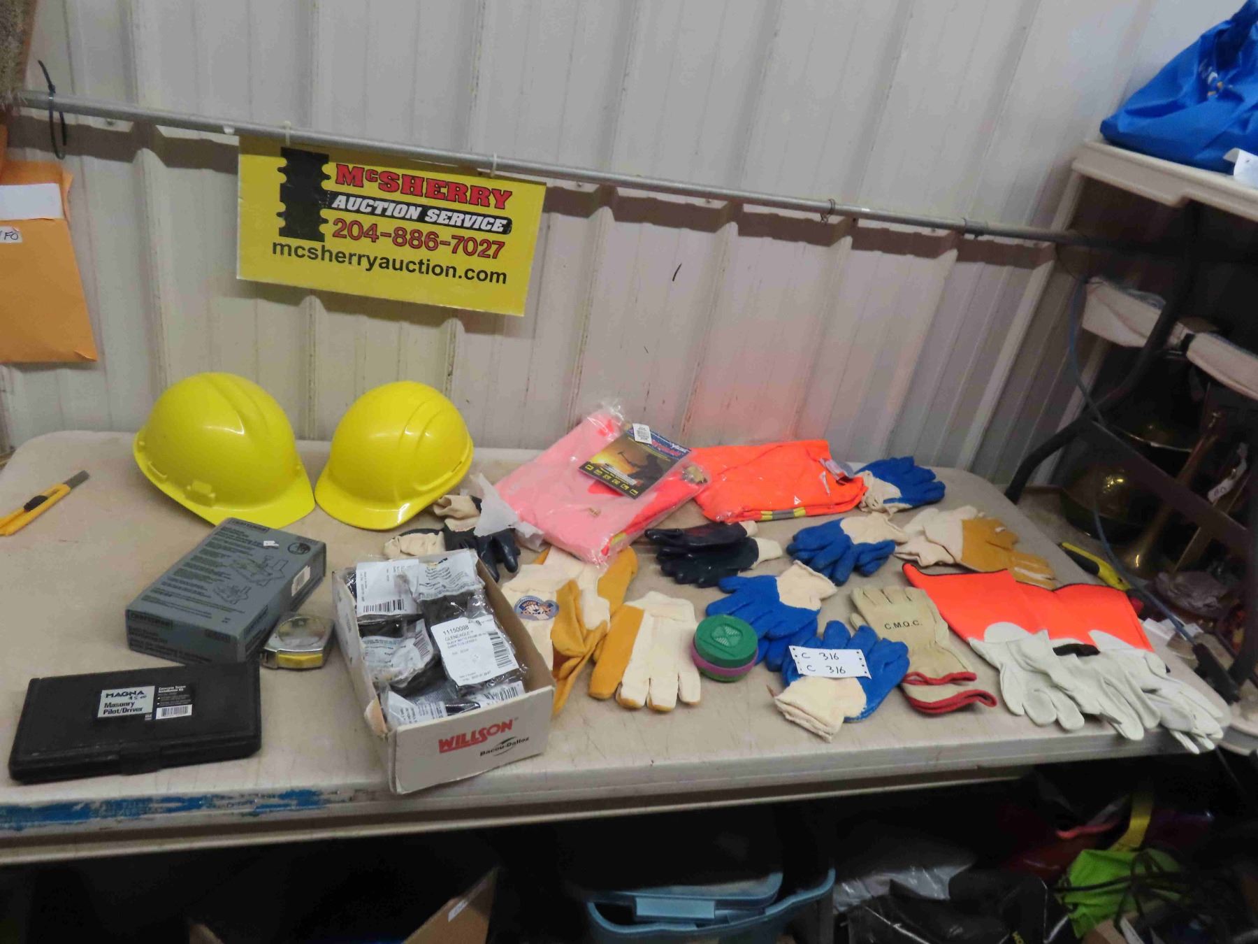 Safety Vest XL , Rain Gear XXXL , 2 Safety Harness, Various Styles Work Gloves, Magna Masonry Pilot/Drive Kit