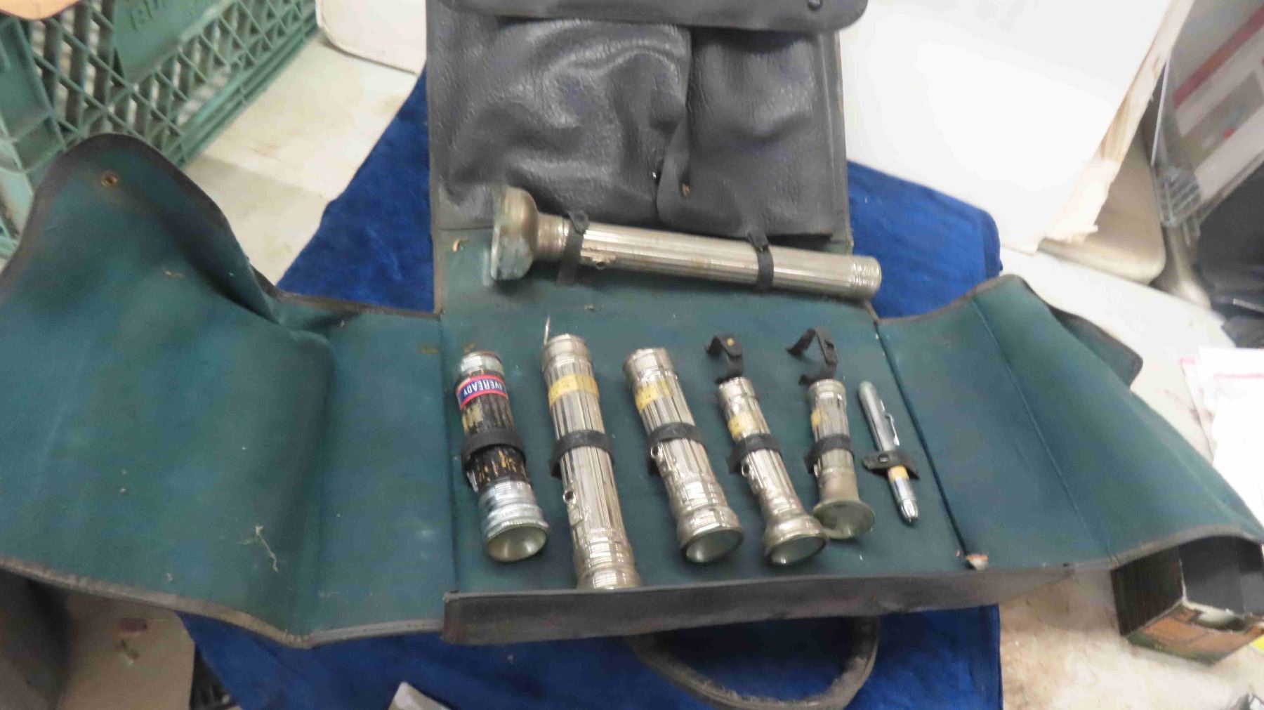 Salesman Sample Ever Ready Flashlights in Leather Briefcase Includes 9 Flashlights with Order Number
