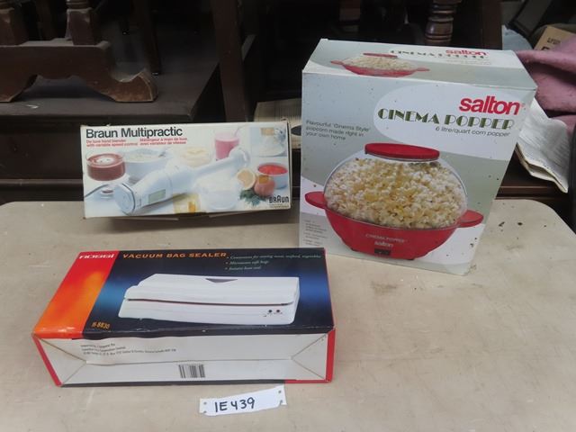 Salton Popcorn Maker, Braun Multi Mixer, Rossi Vac Bag Sealer - New in Boxes