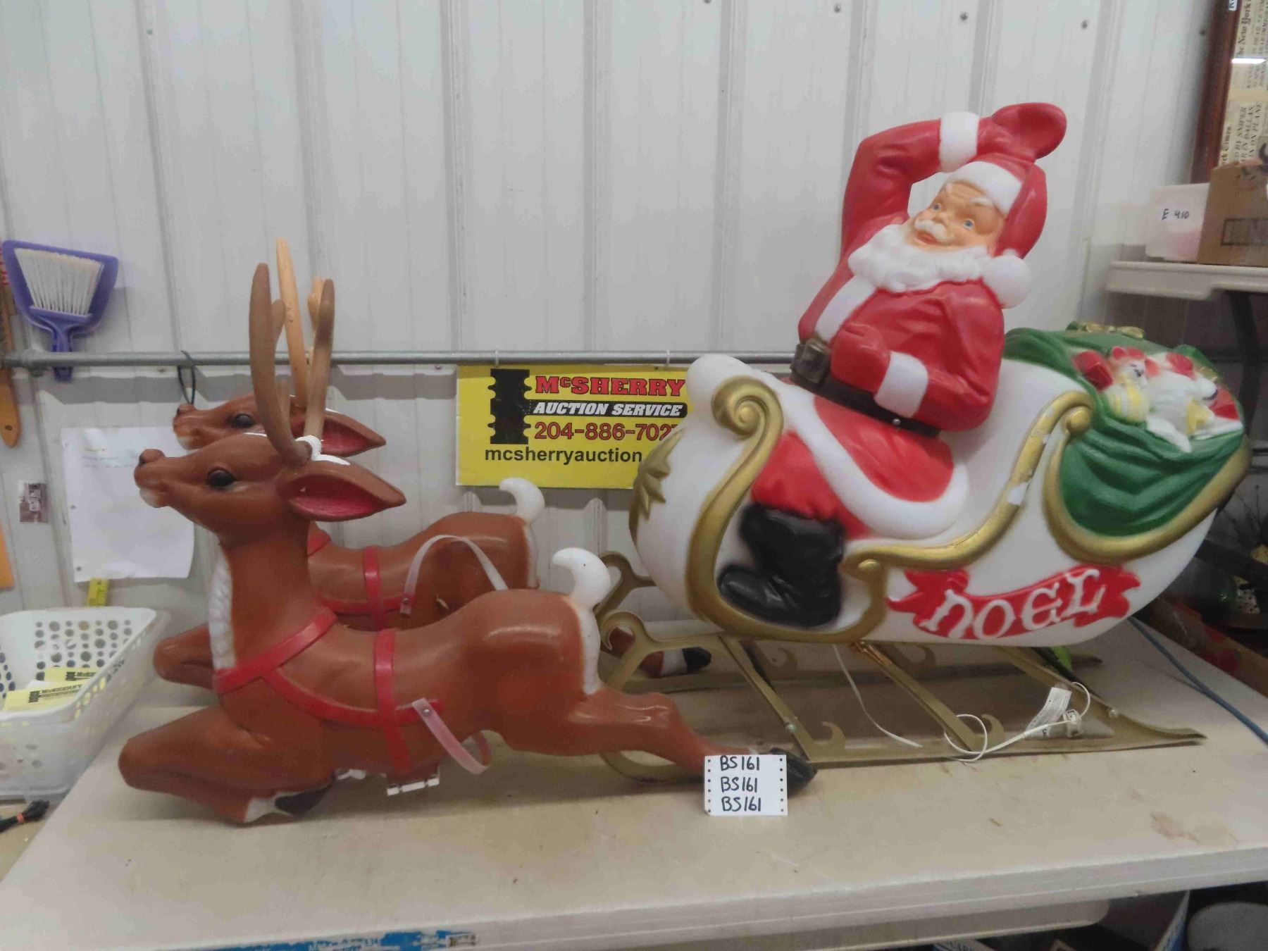 Santa Claus on His Sleigh with 2 Reindeer Light Up Blow Mold - 3 Pcs Sleigh is 36" + Reindeer 34" Long