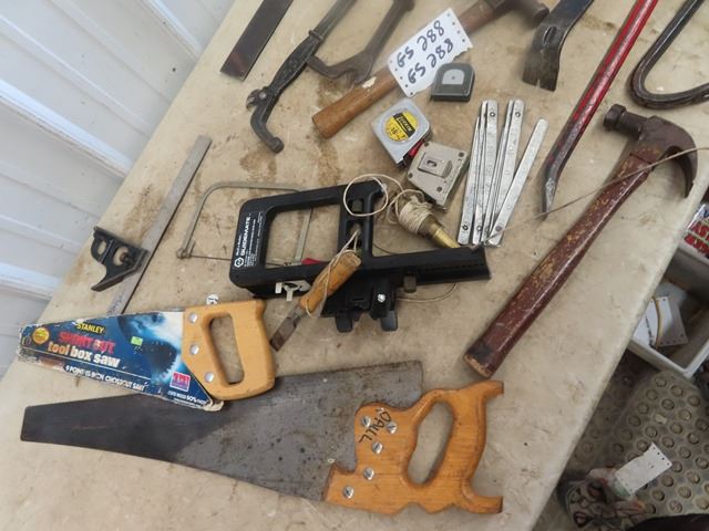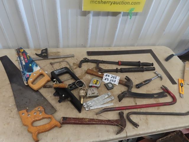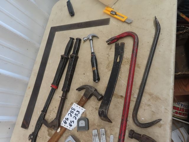 Saws, Hammers, Nail Pullers, Squares, Wrenches, Bars, Tape Measurer Plus More