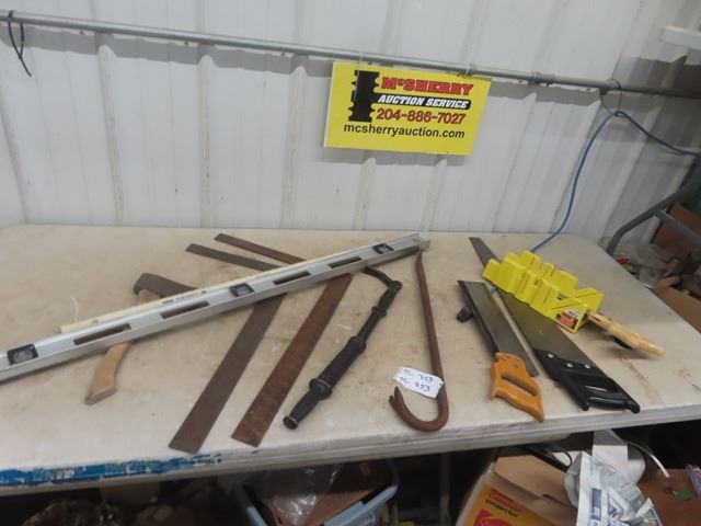 Saws, Hand Mitre Saw, Nail Puller, Level, Axe, Wrecking Bar