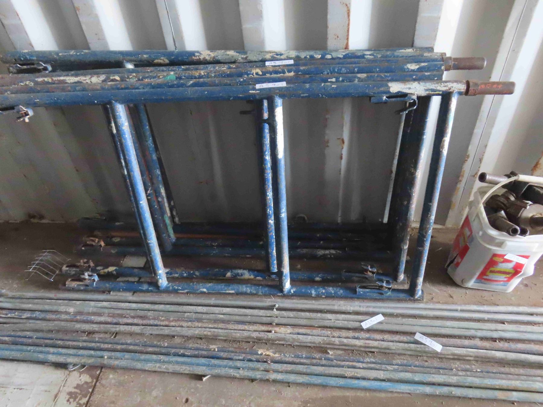 Scaffolding: 6 End Pieces 64'' x 22'' , 12 Bars 100'' L , Basket of