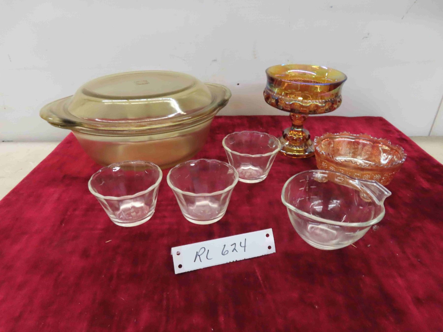 Schott + Gen Durax Jena Glass Round Casserole Dish with Lid, 3 Fireking Fruit Nappes & 2pce Carnival