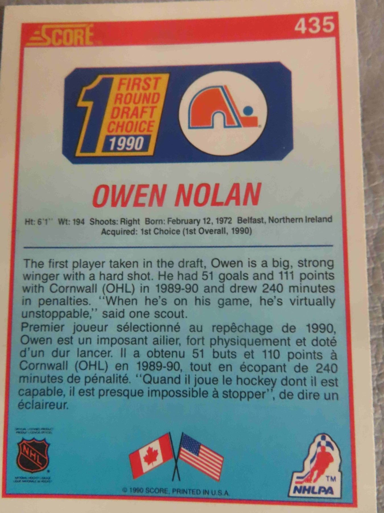 Score 1990 Hockey Cards - Owen Nolan Rookie