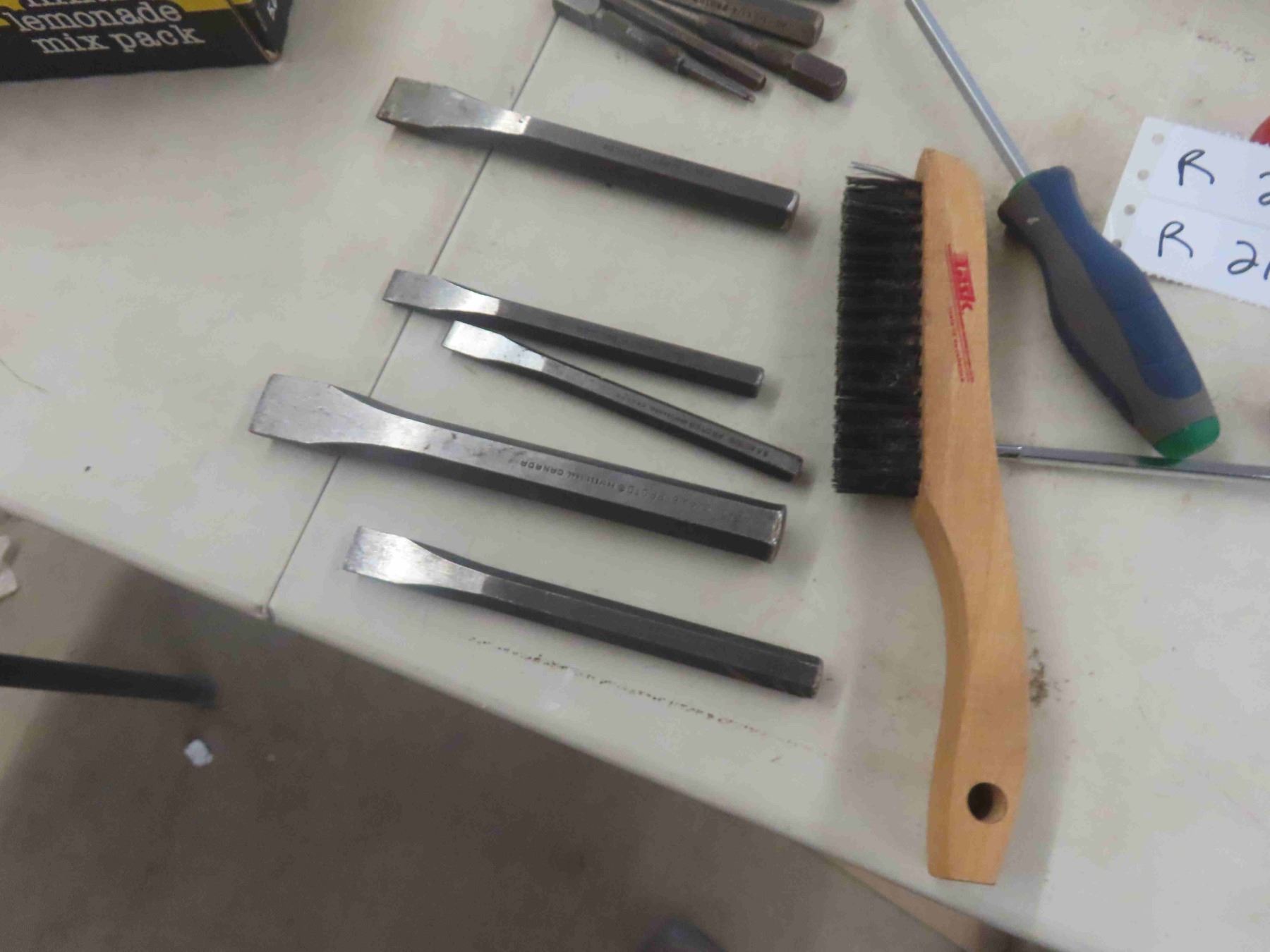 Screwdrivers, Chisels, Punches, Files, Drill Bits, Chalk Line,