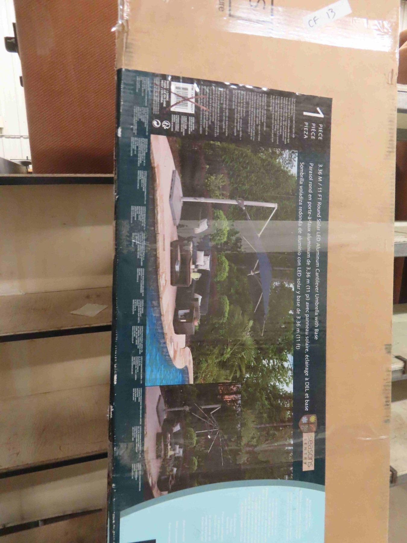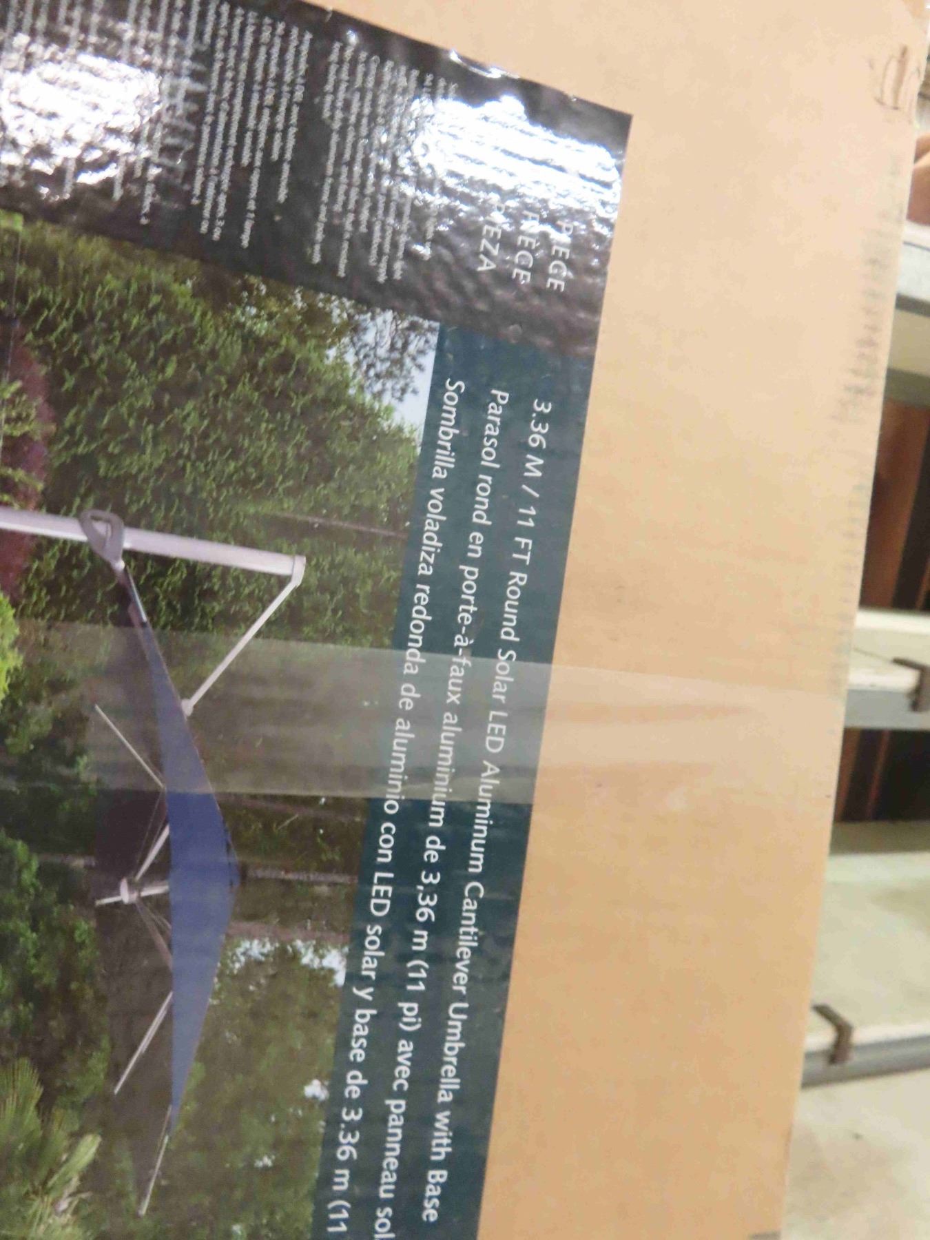 Seasons Sentry 11ft Round Solar LED Aluminum Cantilever Umbrella - New or Store Return