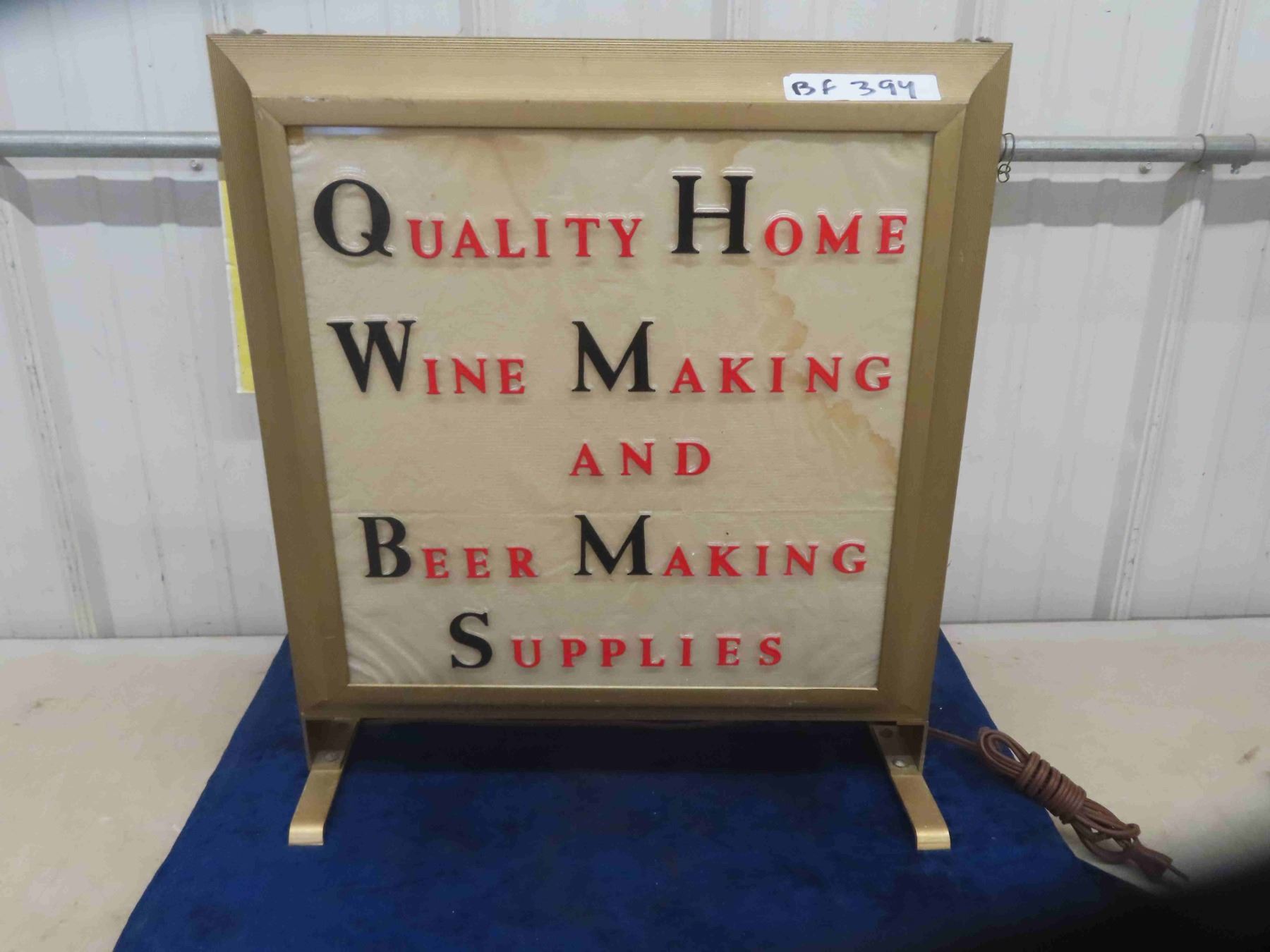 Self Standing Store Light Up Sign ' Quality Beer + Wine Supply' 19" x 22"