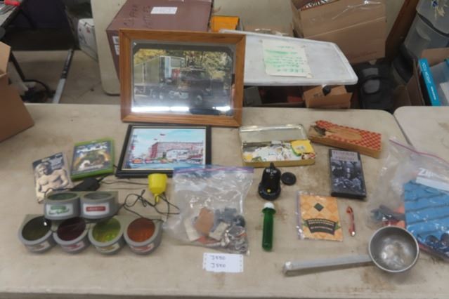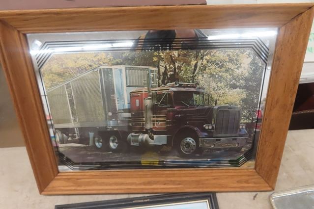 Semi Truck Mirror Picture, Portage Ave Art Print, Tin Full of Stamps, Smirnoff Lights plus more